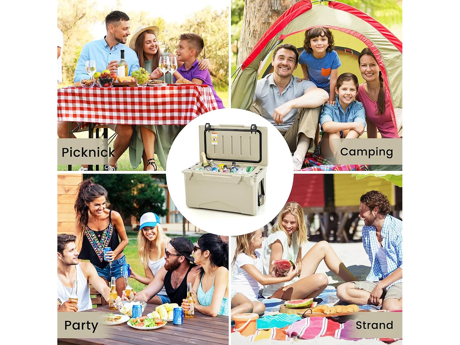 Thermobox, koelbox, draagbaar, warmtecontainer met flesopener en handvat, thermobox, voedseltransportcontainer voor camping, picknick, 21 liter (Kahki) SB33958