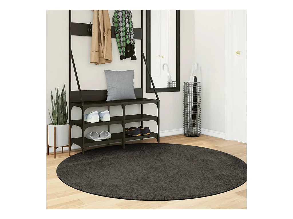 HUARTE zacht en wasbaar laagpolig vloerkleed in antraciet Ø 160 cm