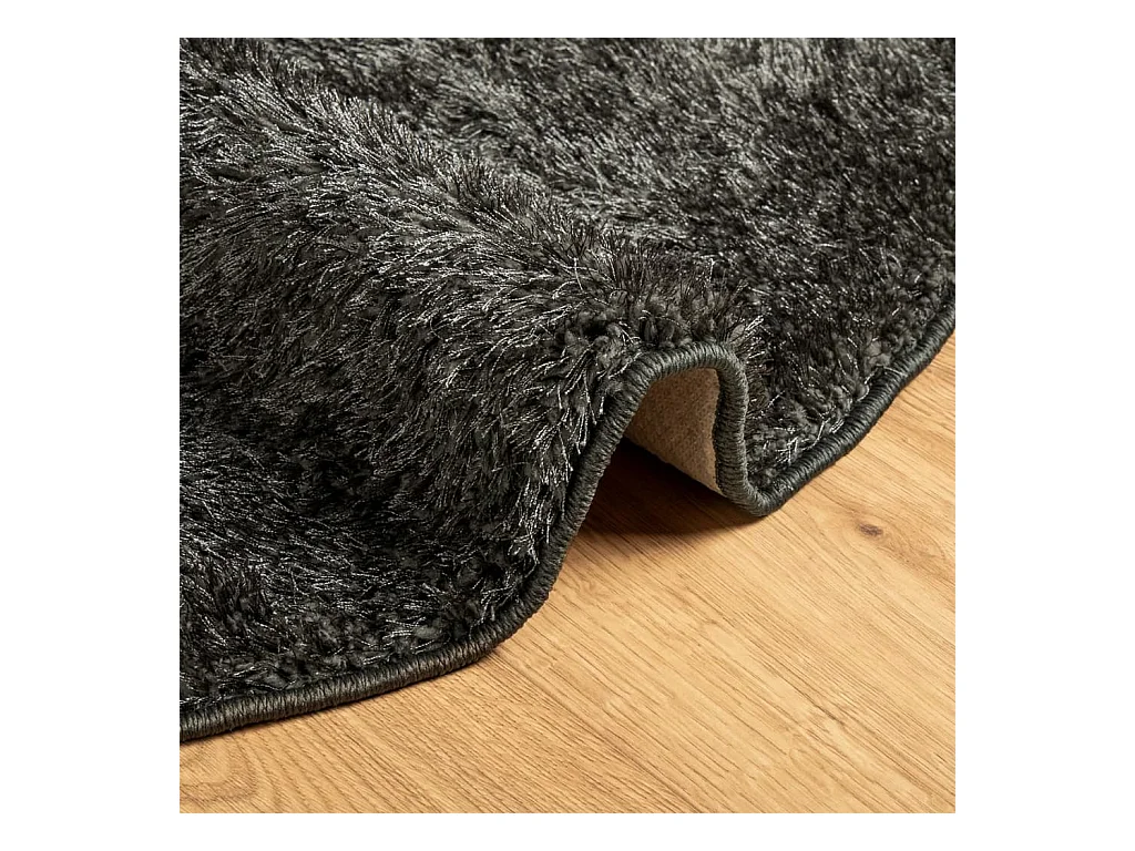 ISTAN vloerkleed met lange pool, glanzende antracietlook, Ø 160 cm
