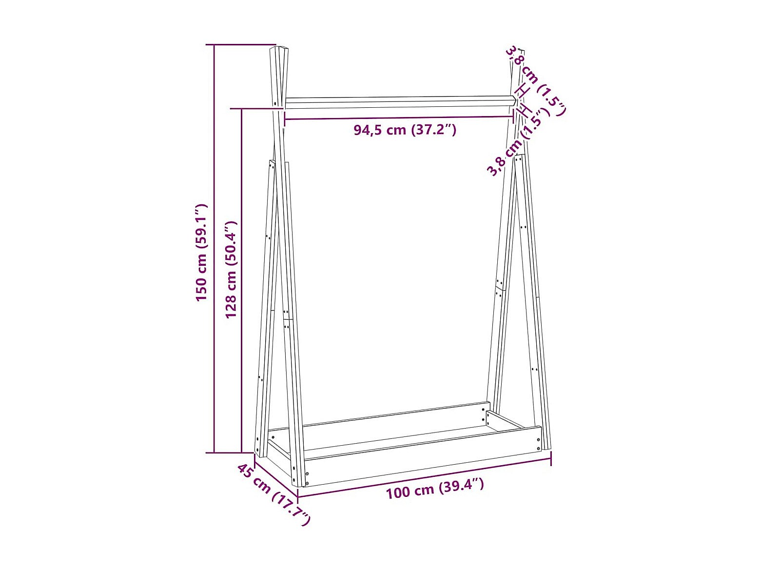Jacques-Marie Kledingrek 100x45x150 cm massief grenenhout wit