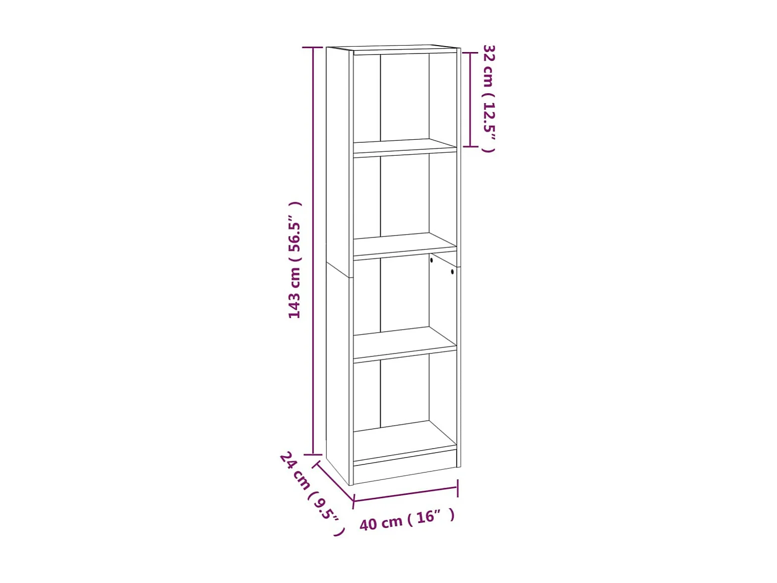 Jairo Boekenkast 4-laags 40x24x143 cm bewerkt hout gerookt eikenkleur