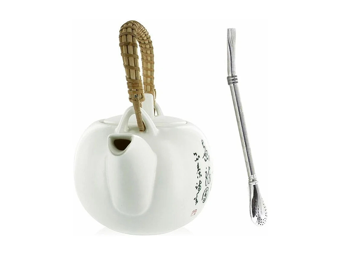 Jiangxi aardewerk theepot 1 liter + roestvrijstalen rietje met filter