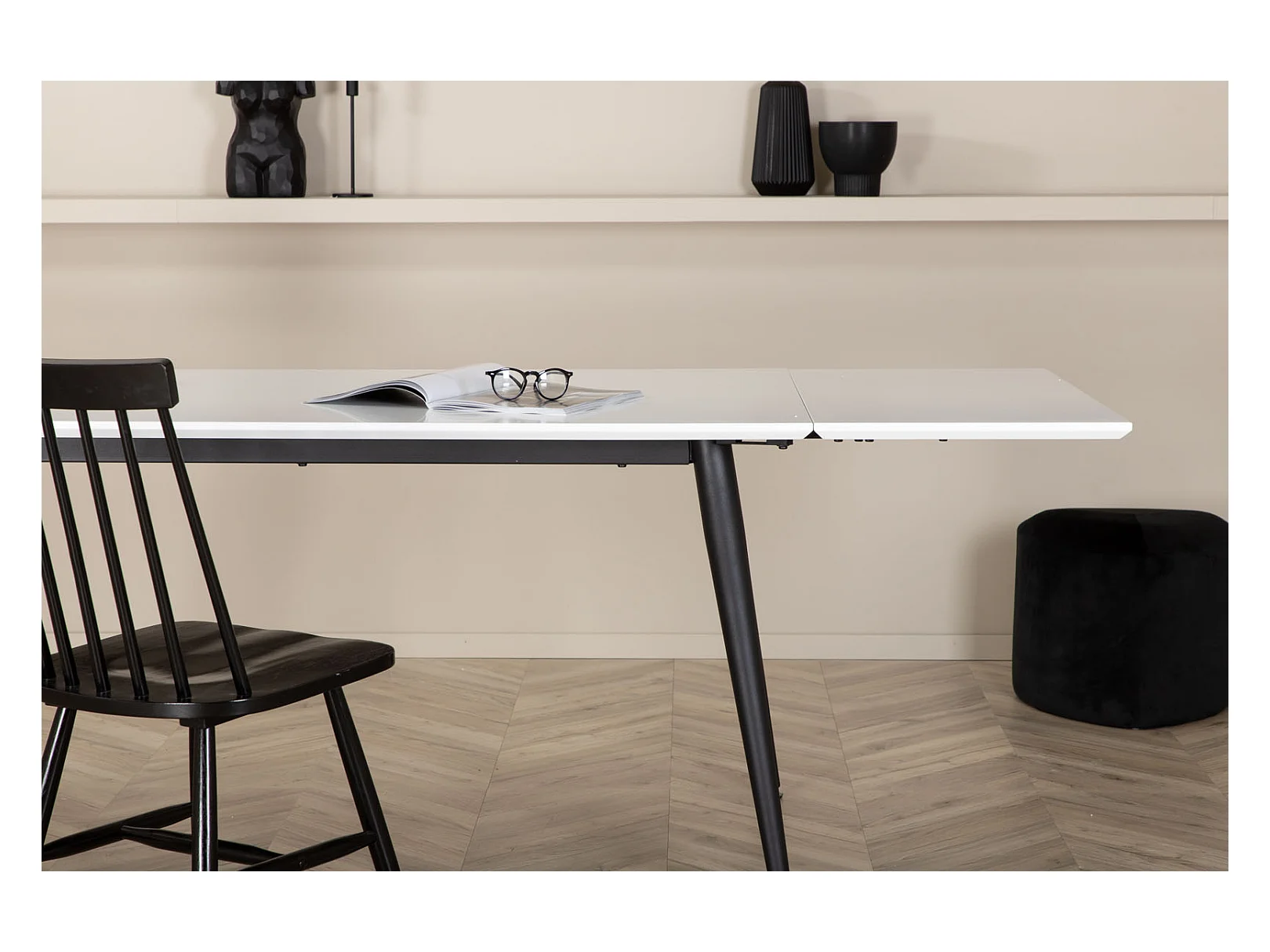 Jimmy eetkamertafel 90x195/285cm met extra plaat HPL wit, zwart.