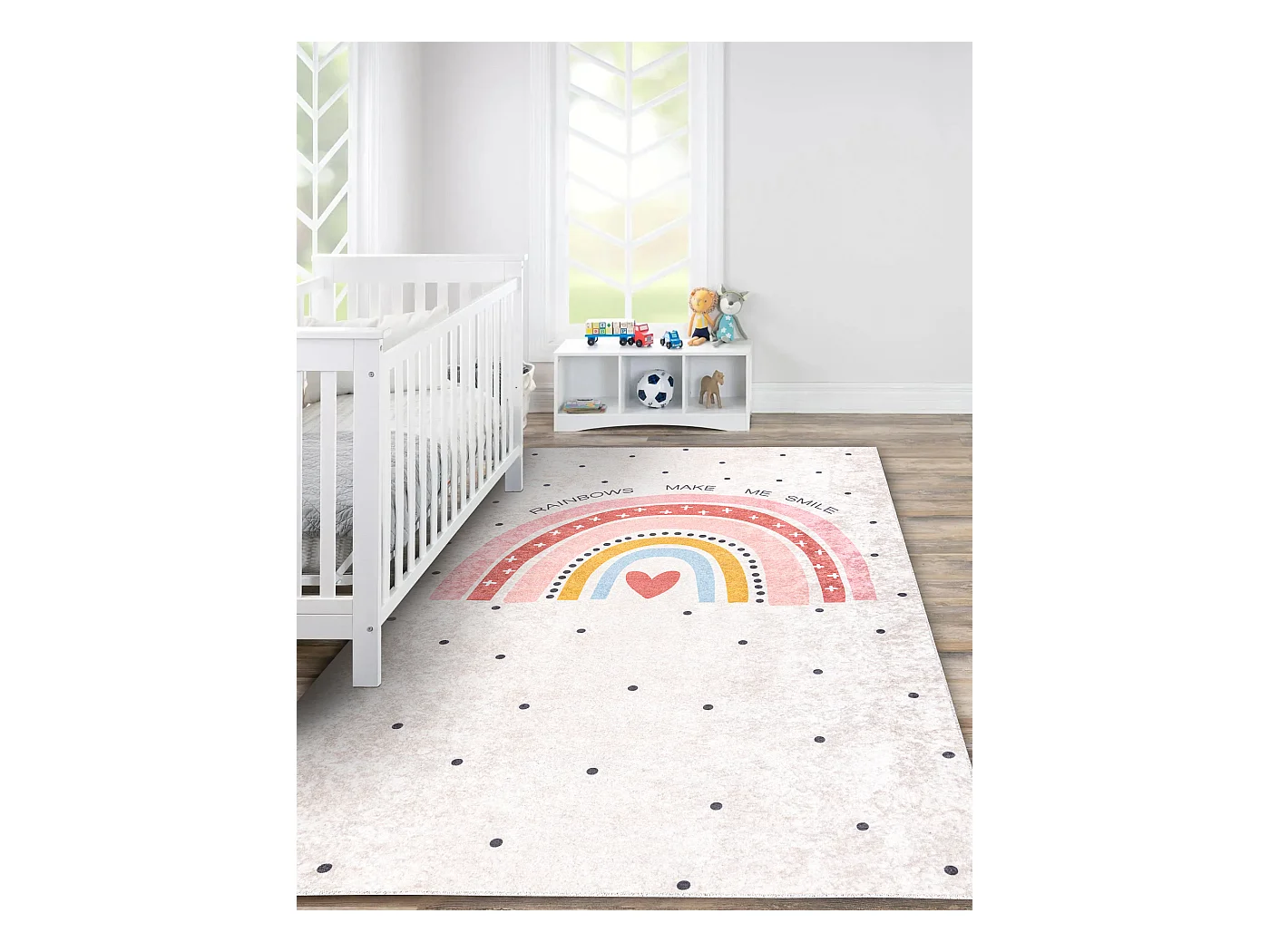 JUNIOR 51300.802 tapijt wasbaar Regenboog, stippen voor kinderen antis 80x150 cm