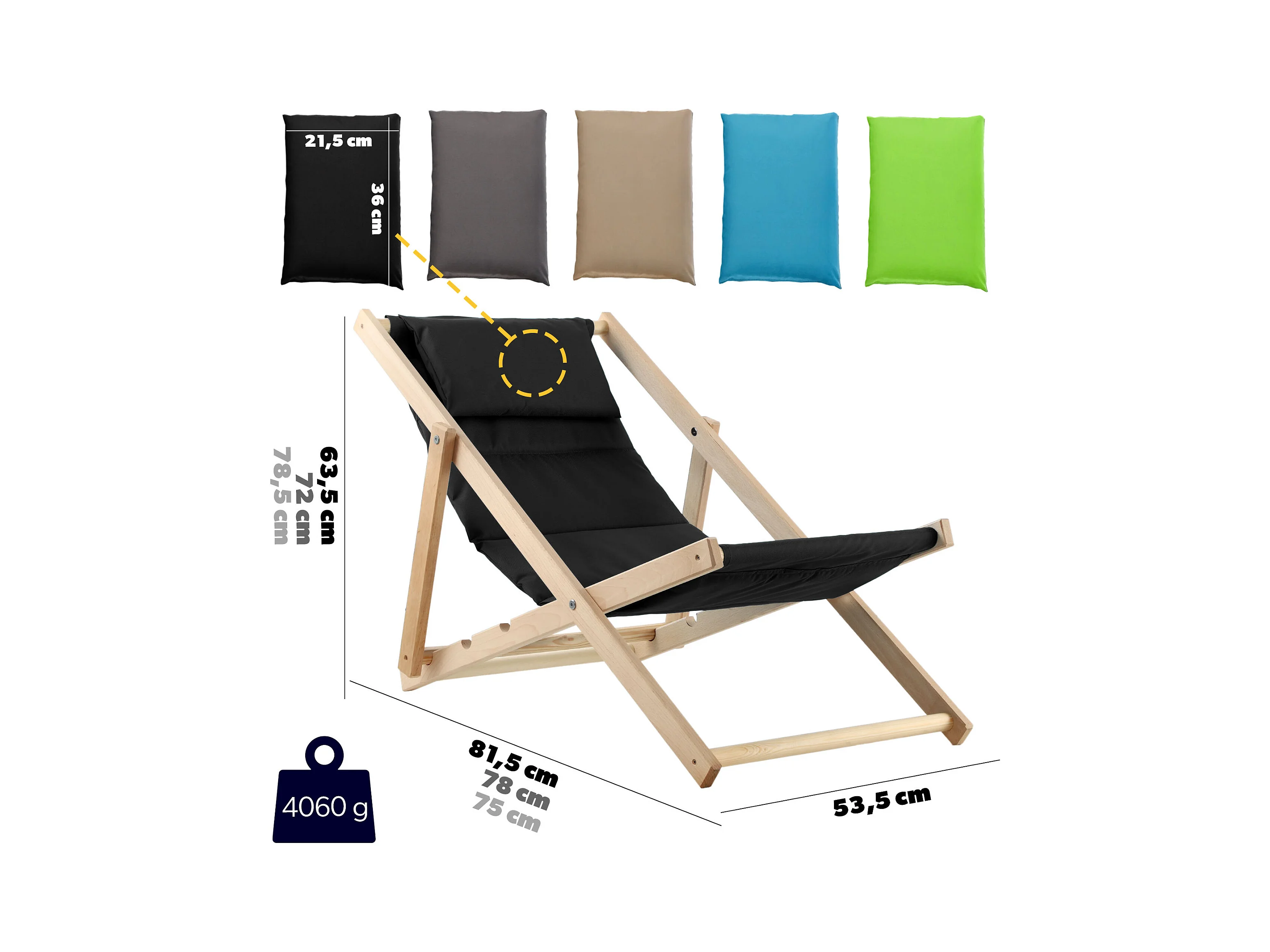KADAX Ligstoel, strandstoel van hout, zonnebed tot 120 kg, ligstoel van beukenhout, houten klapstoelen, strandstoel, klapstoel voor strand, houten ligstoel (zwart)