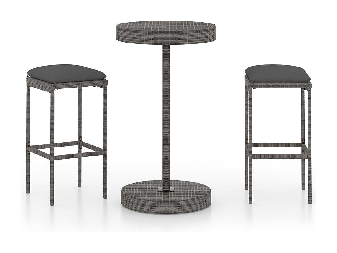 Thylvi 3-delige Tuinbarset met kussens poly rattan grijs
