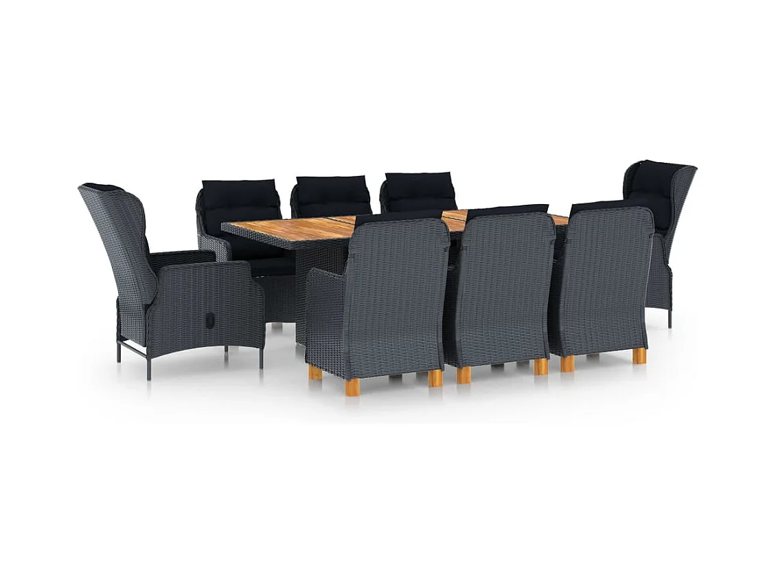 Kalren 9-delige Tuinset met kussens poly rattan donkergrijs