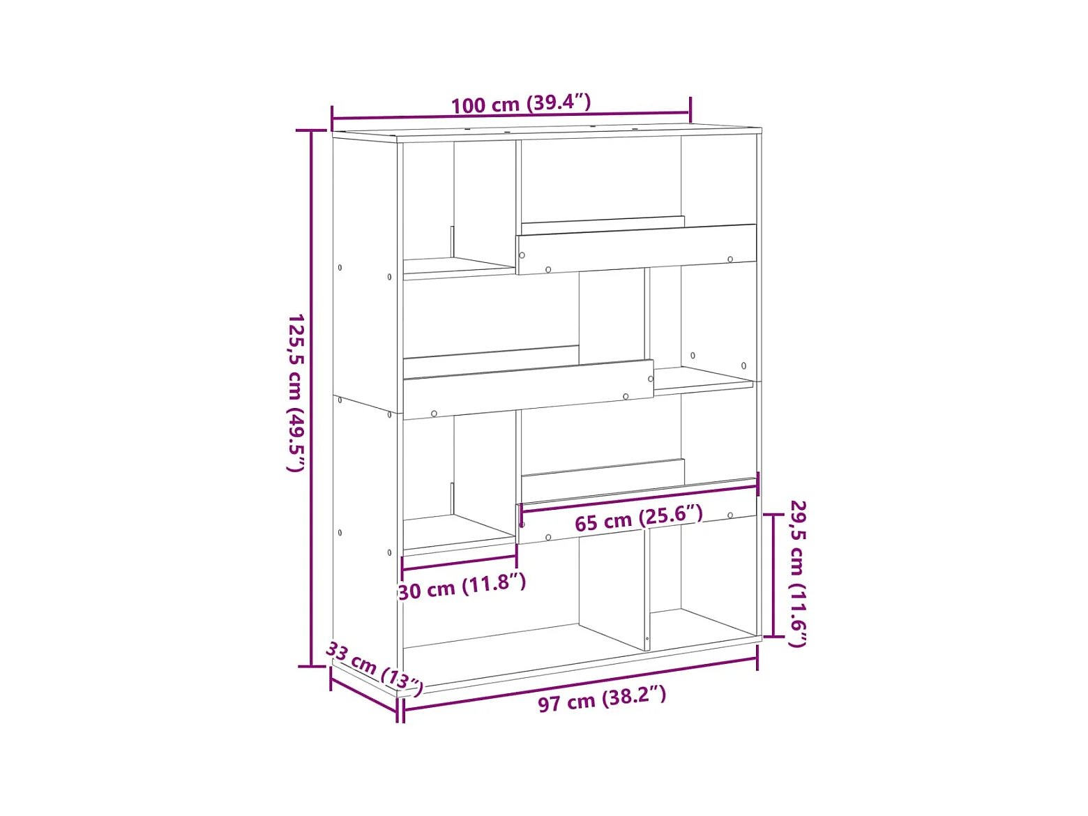 Kamerscherm / boekenkast 3-laags 99x29x99 cm hout betongrijs