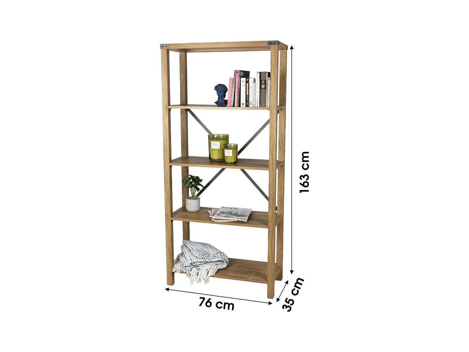 Houten boekenkast met metalen frame uit de JAYCE collectie - Afmetingen 100x35x156 cm