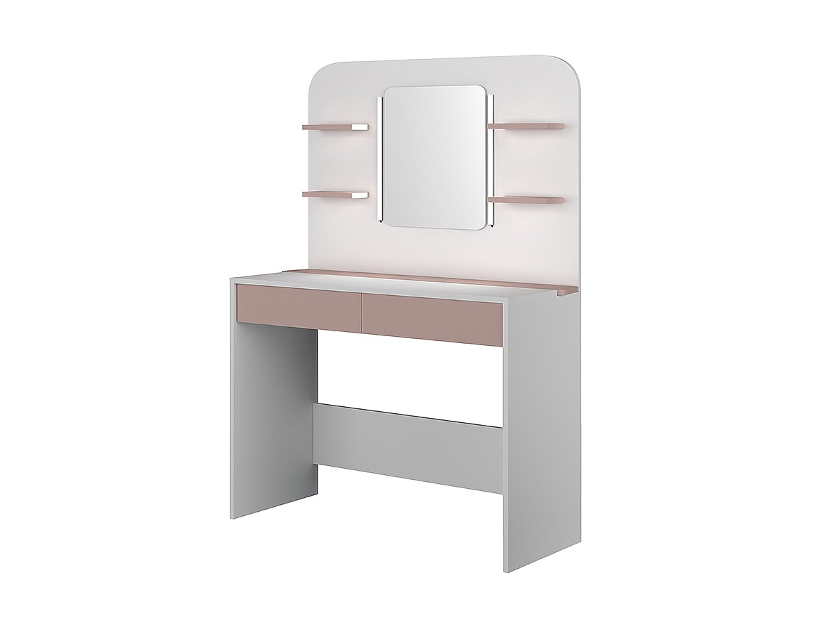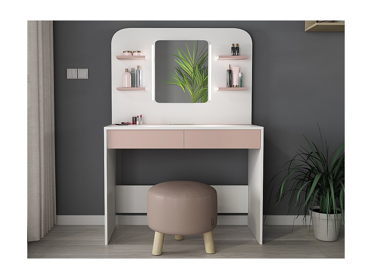 Kaptafel AMALIA - Spiegel met ledverlichting en opbergruimtes - Poederroze