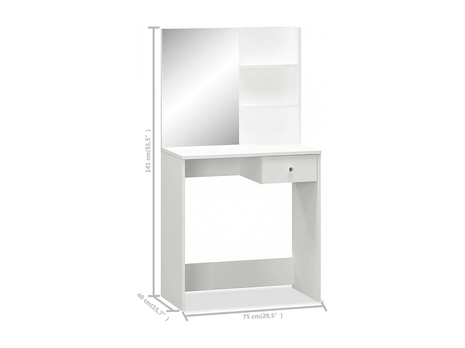 Kaptafel met 2 lades, hoogte 75 cm, slaapkamercommode Wit highboard dressoir