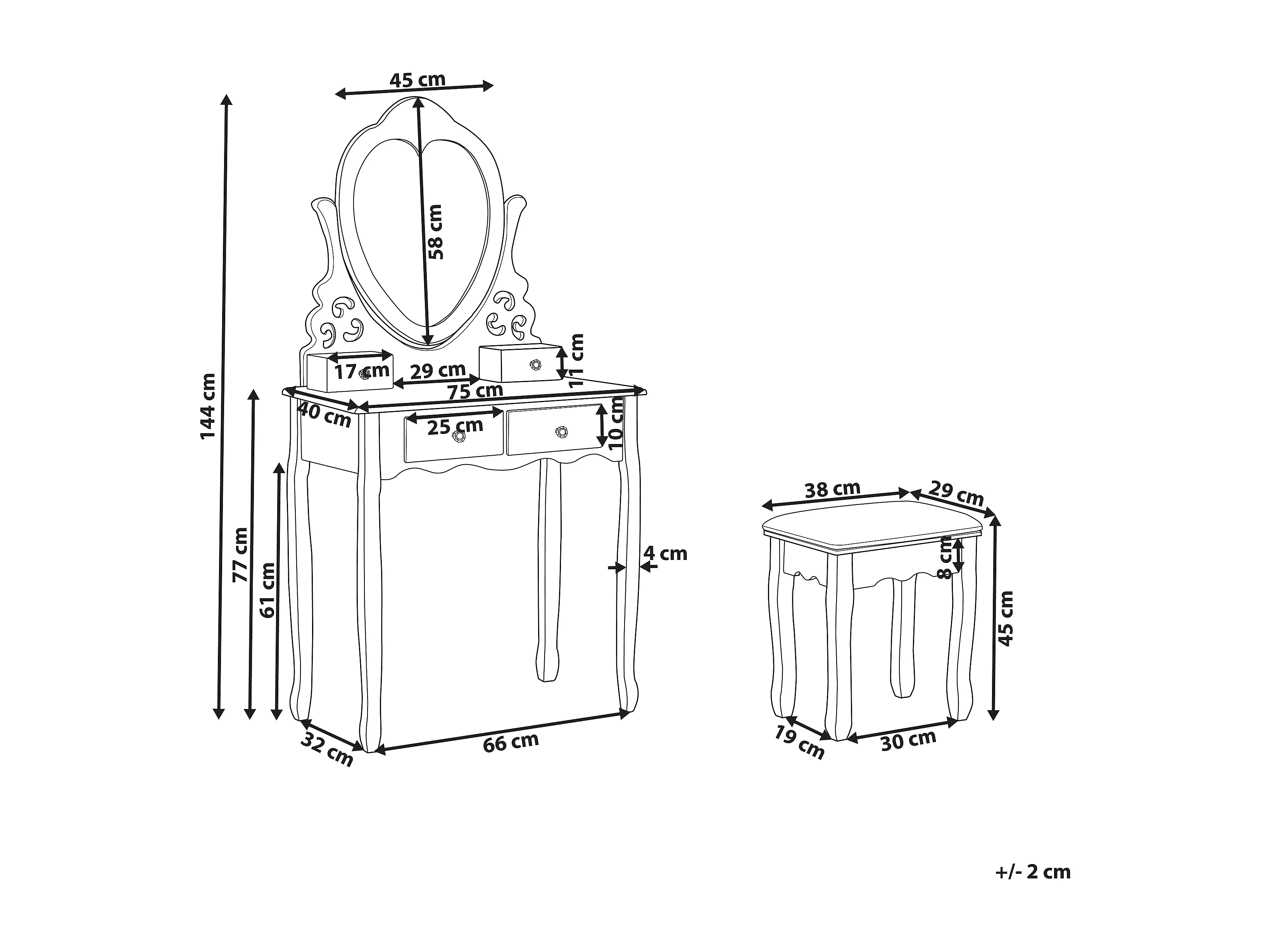 Kaptafel met krukje wit DIVA