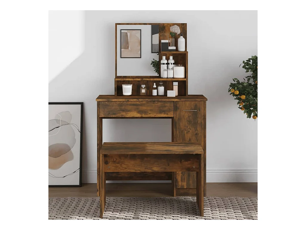 Kaptafel met spiegel Gerookt eikenhout 86,5x35x136 cm