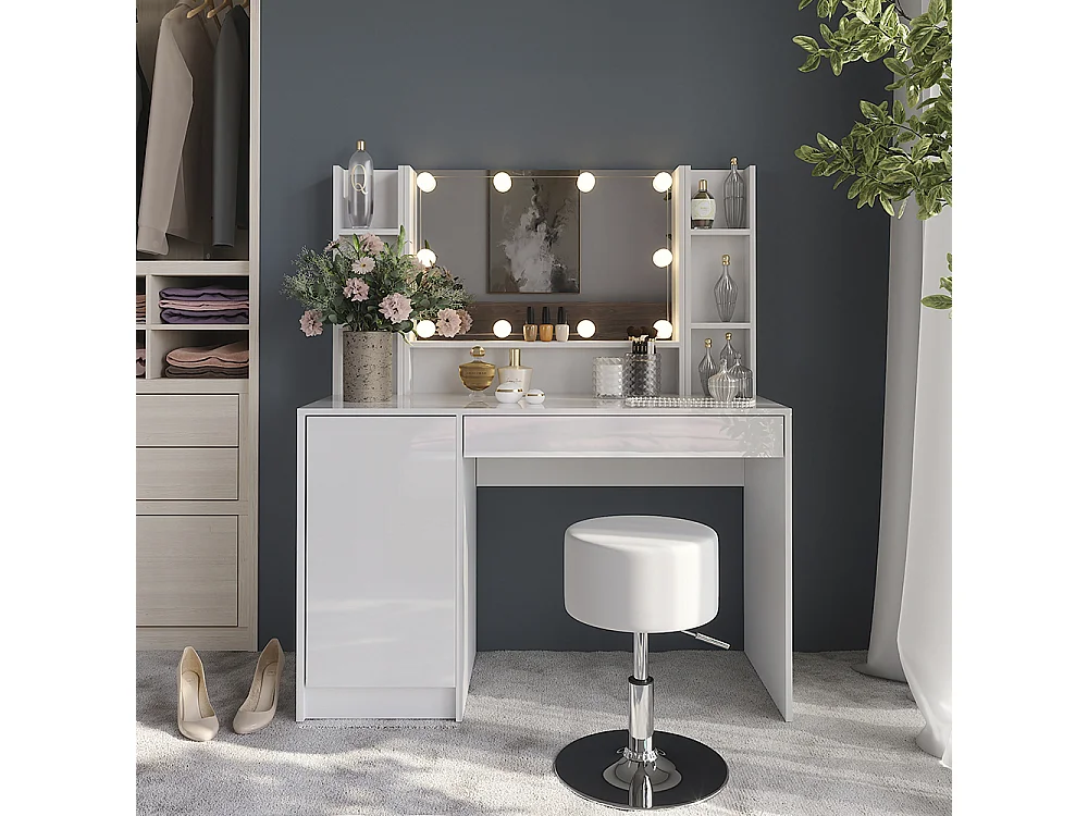 Kaptafel set met kruk wit/wit hoogglans 119.8x50.1x76 sherry