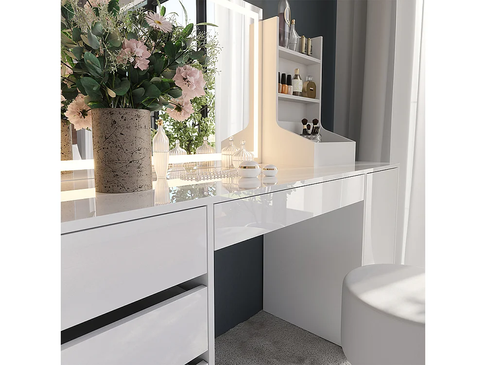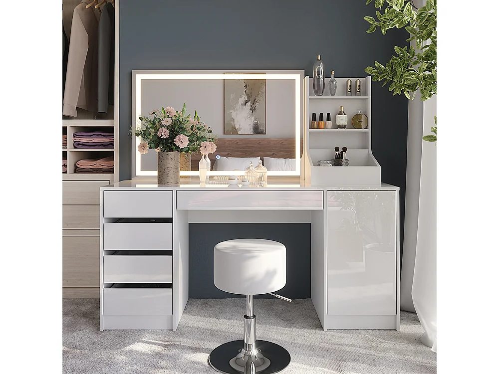 Kaptafel set met kruk wit/wit hoogglans 158.2x50.1x76 sherry