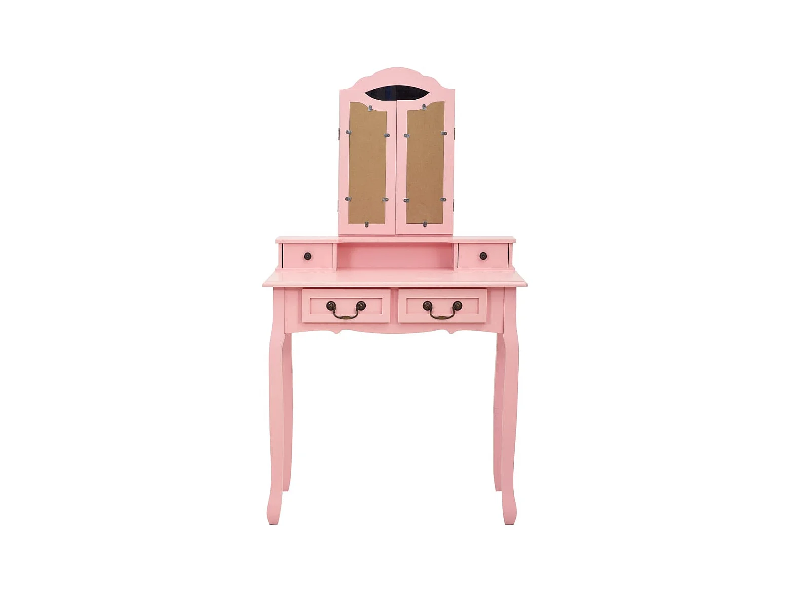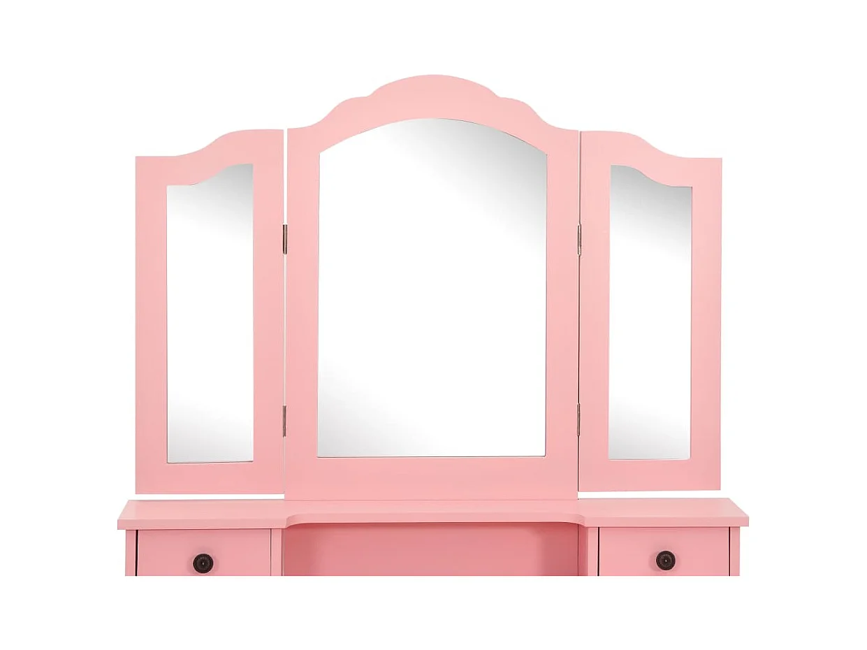 Kaptafel met kruk en 3-voudige spiegel in roze