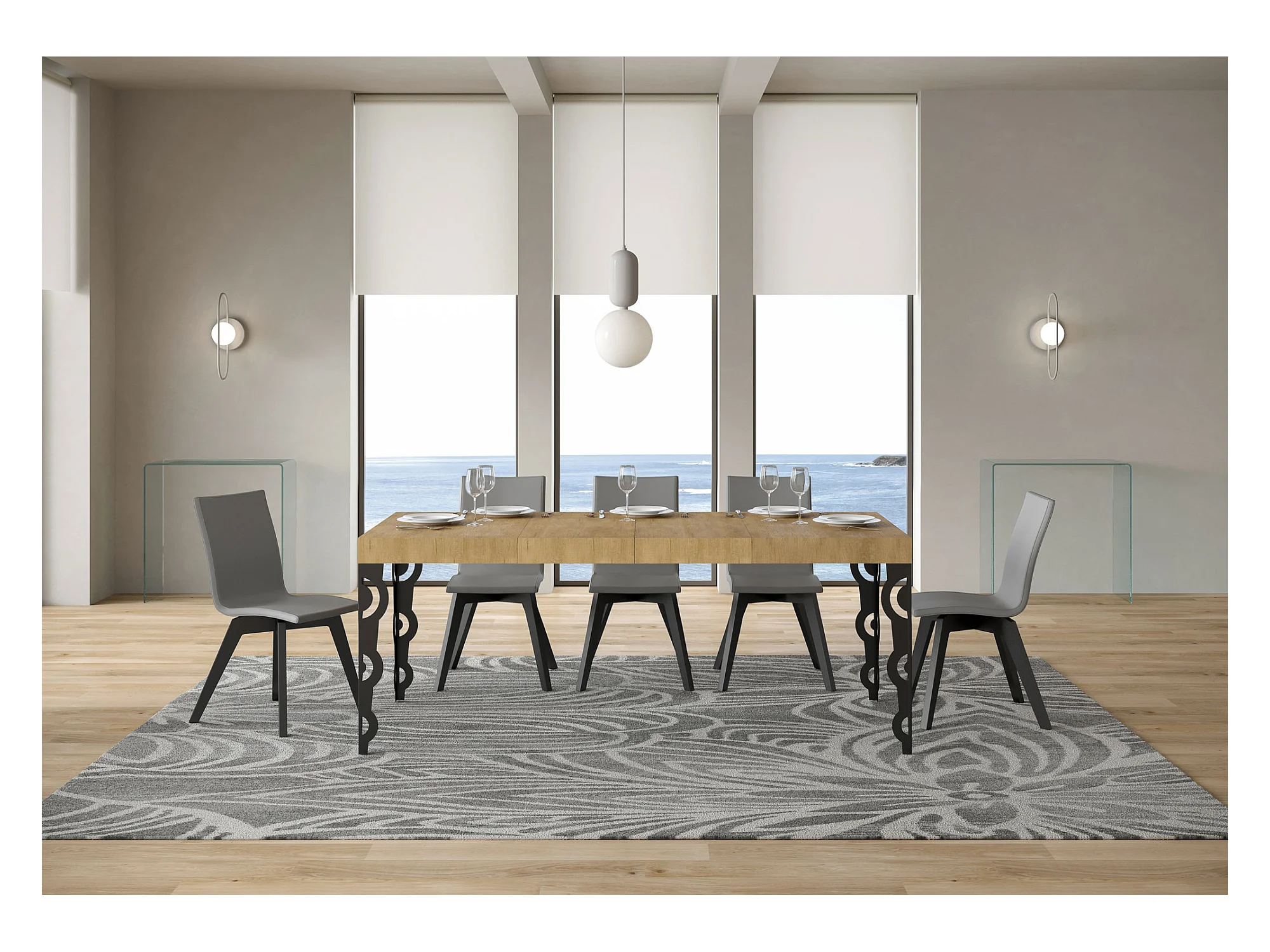 Karamay Premium uitschuifbare tafel 120/380x90 cm natuurlijk eiken met antraciet poten
