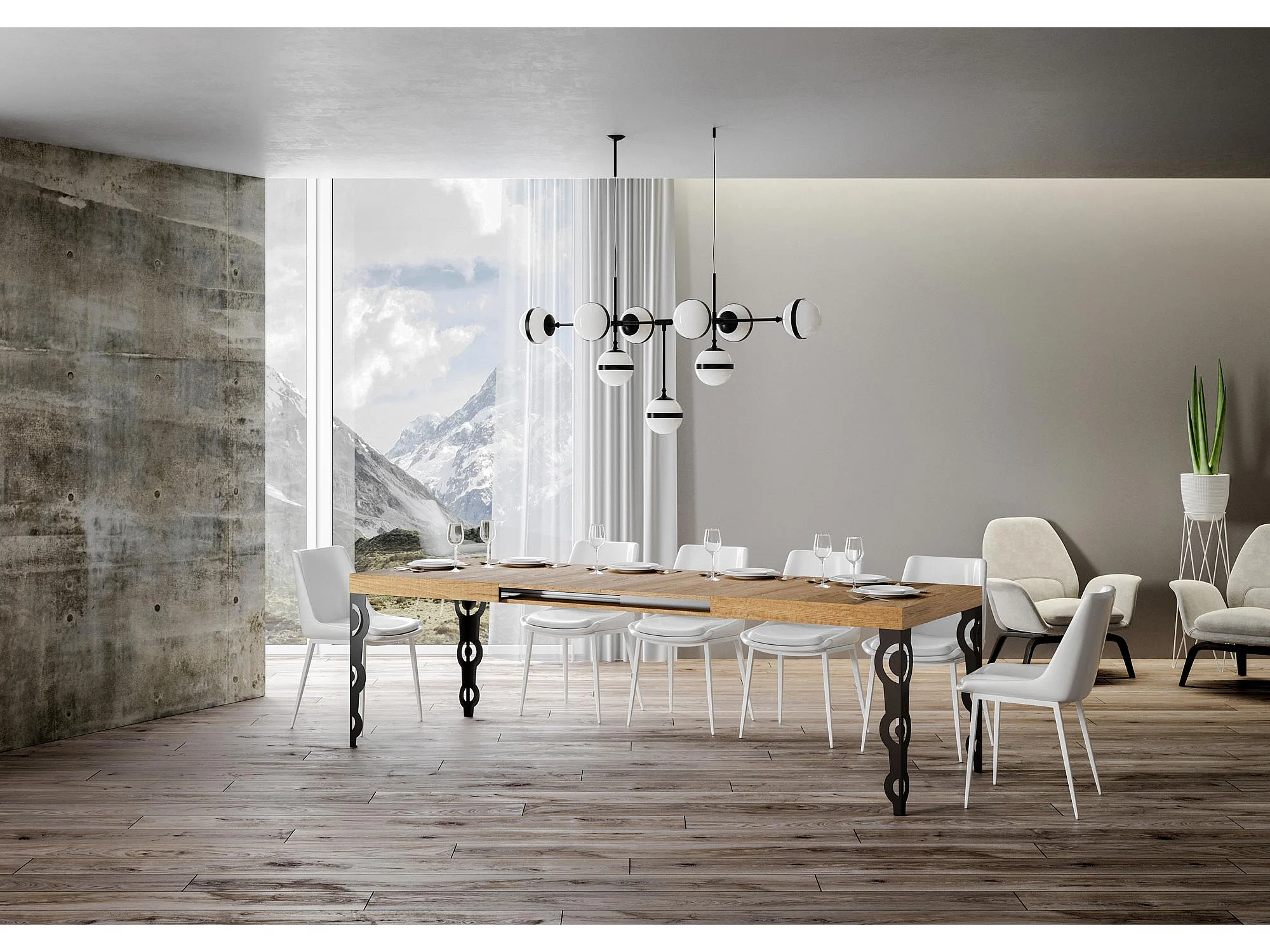Karamay uitschuifbare tafel 120/380x90 cm natuurlijk eiken met antraciet poten