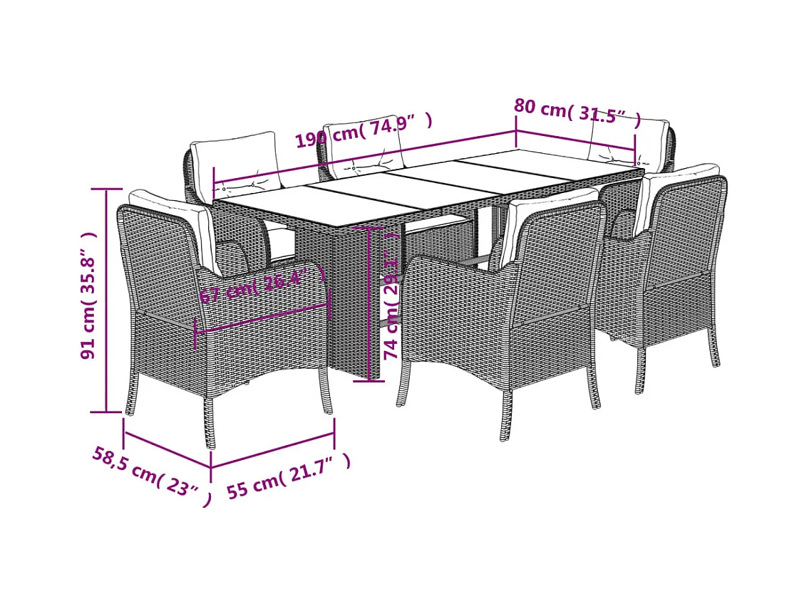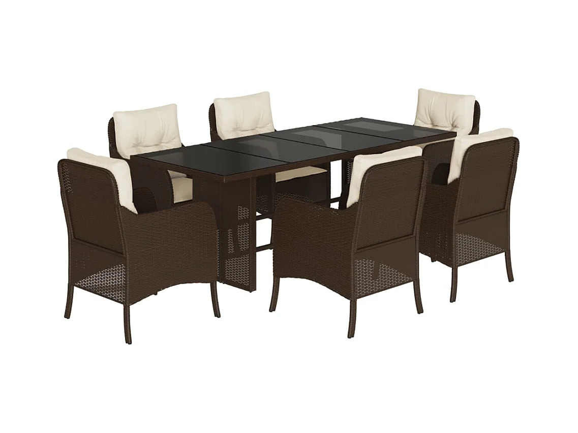 Anselm 7-delige Tuinset met kussens poly rattan bruin
