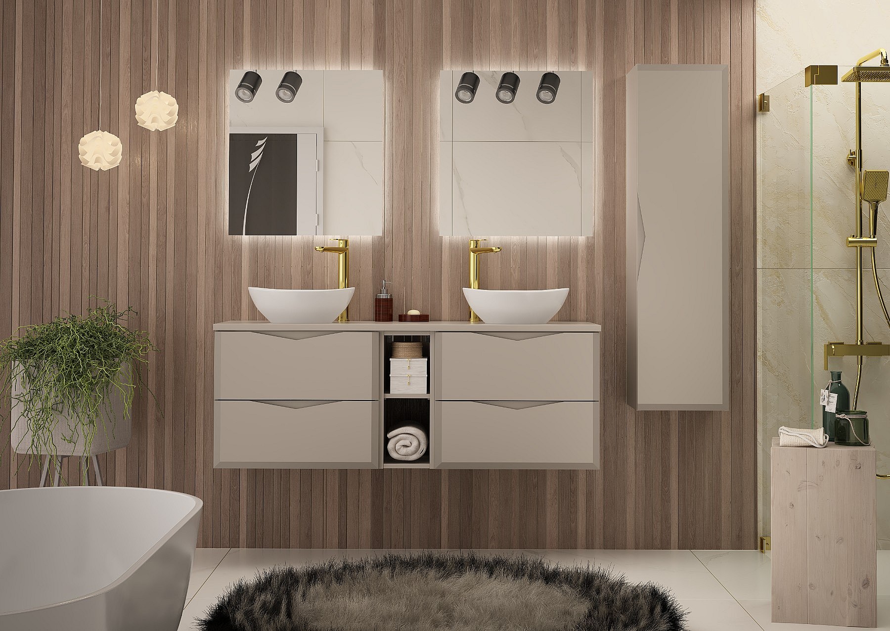 120cm dubbele wastafel met LED spiegels en Adriel houten badmeubel