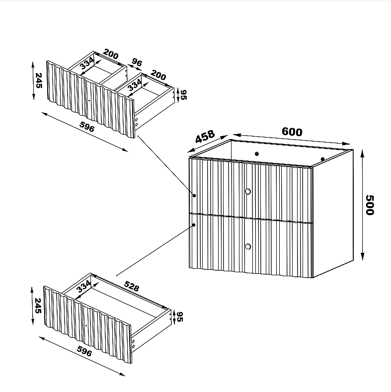 Badkamerset 60 cm Kast met wastafel Geribbelde fronten Aria