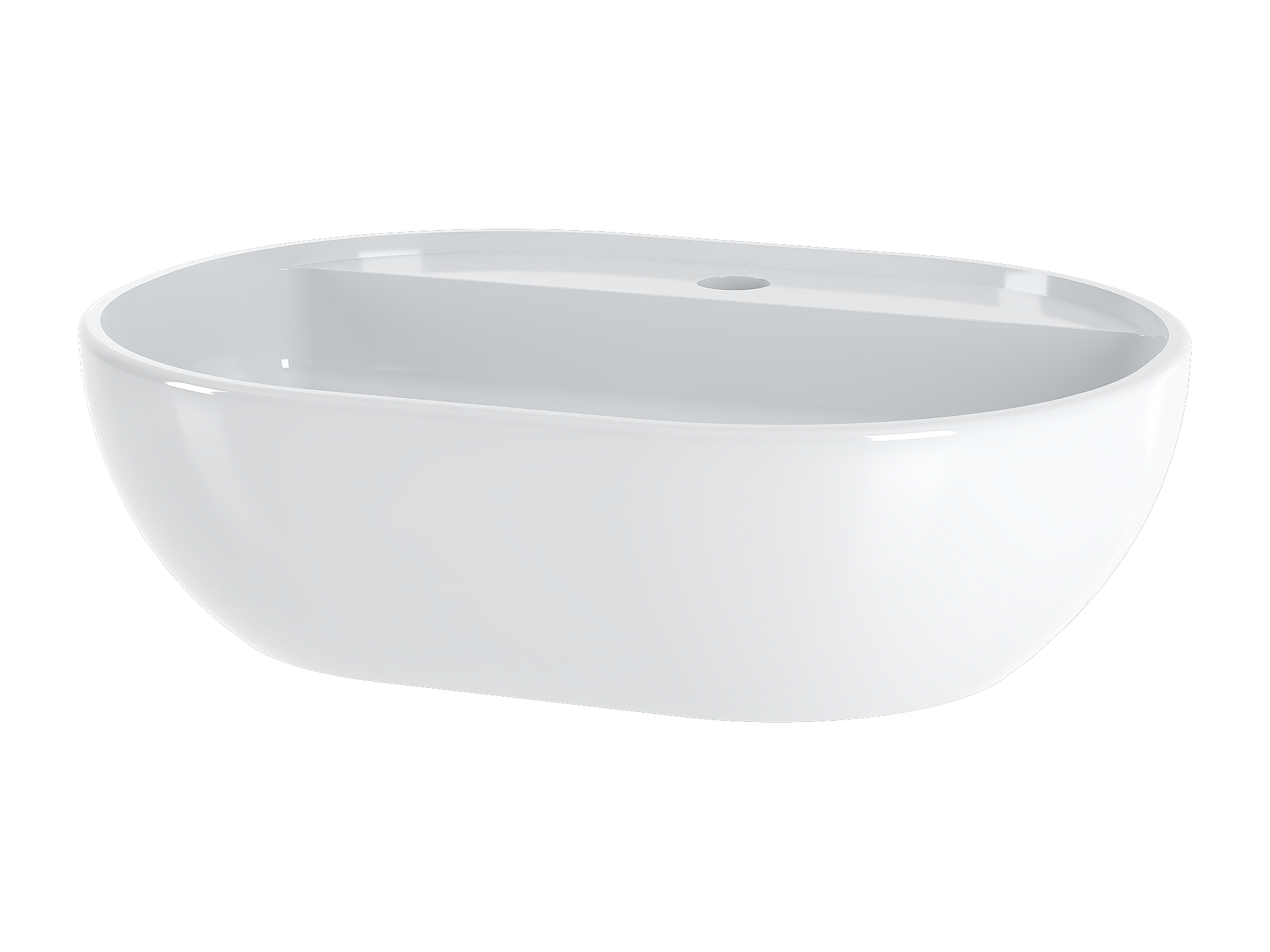 Set van 80cm enkele wastafel met 2 nissen en Viggo houten stootbord
