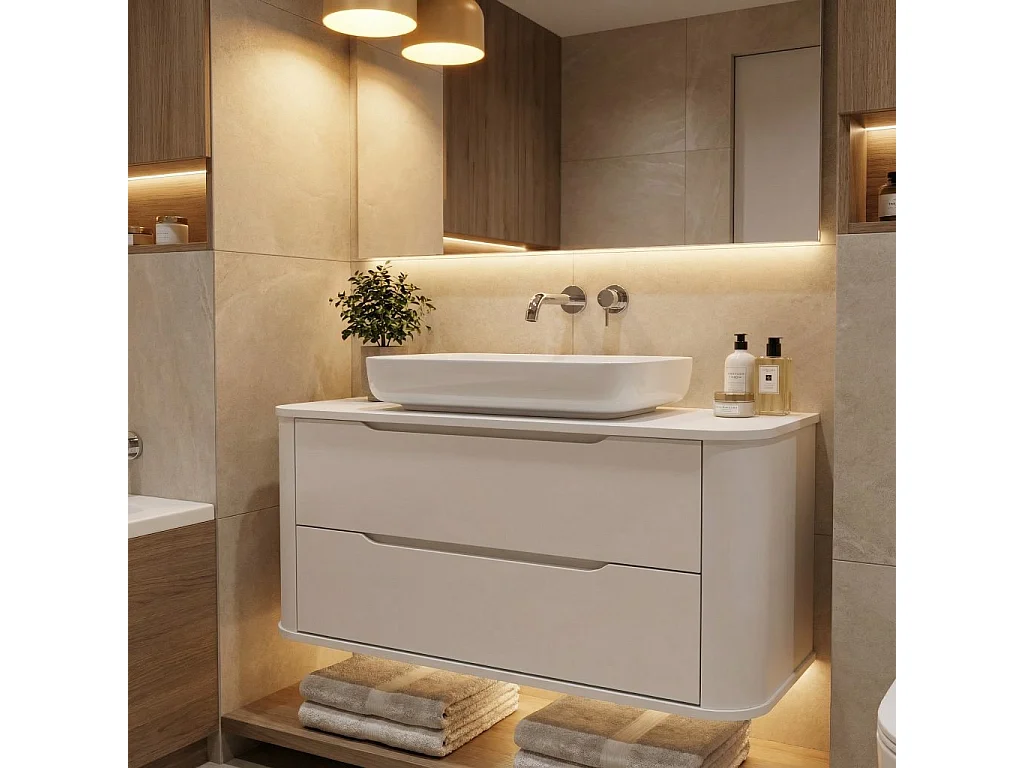 Kasjmier wastafelkast met blad 100 cm Afgeronde zijkanten en blad