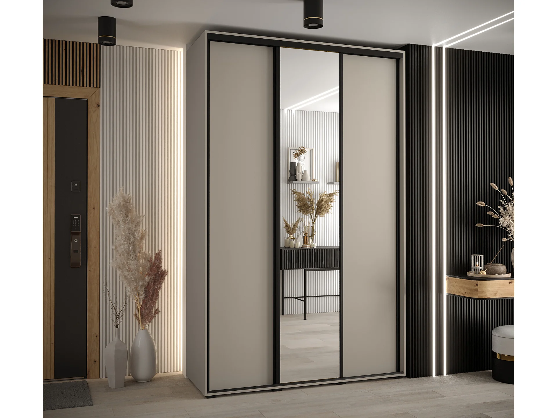 KAST DAKOTA 3 MET SCHUIFDEUREN 235,2/150/60 3 deuren (Kasjmier/Zwart)