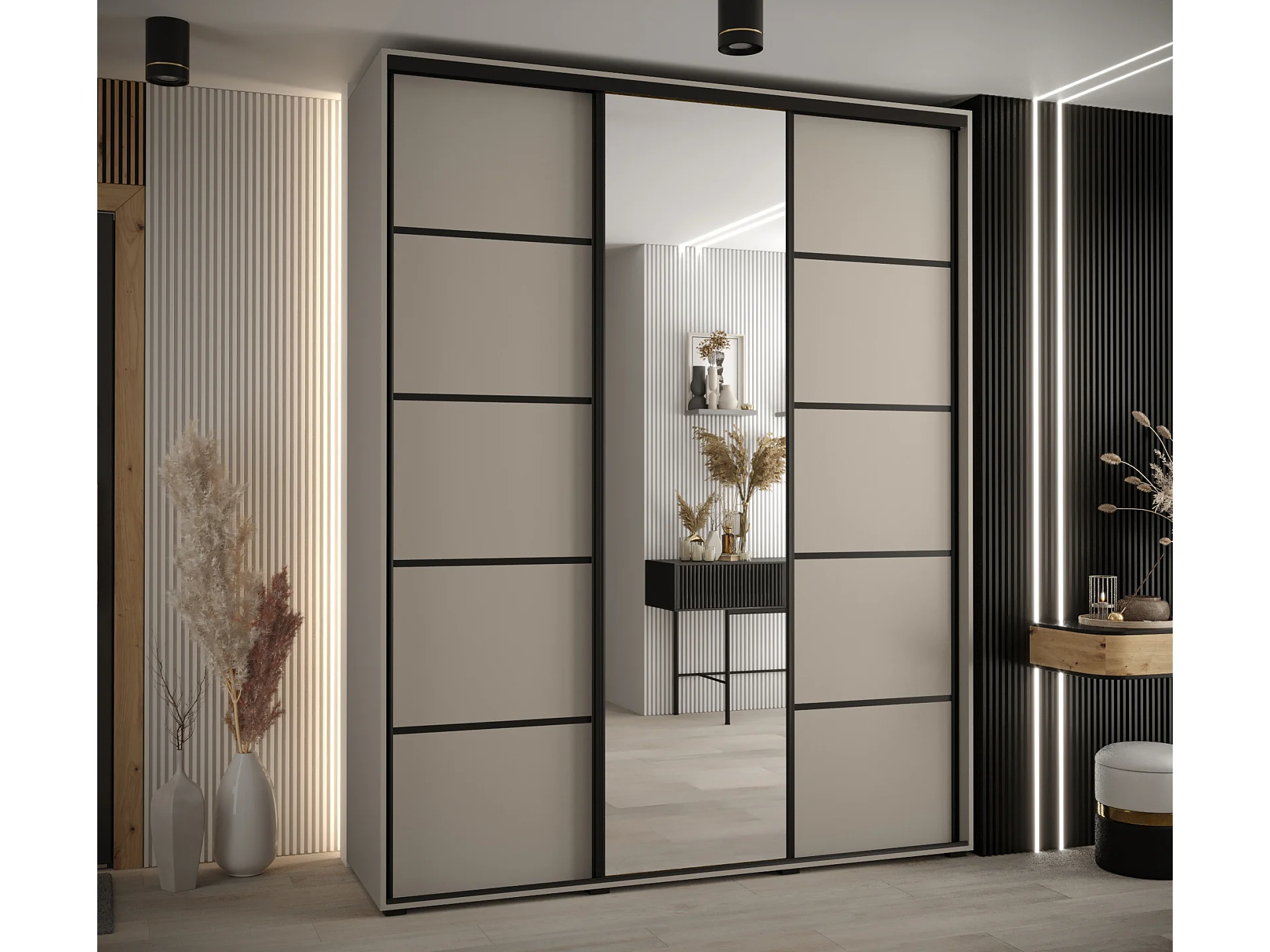 KAST DAKOTA 5 MET SCHUIFDEUREN 235,2/200/60 3 deuren (Kasjmier/Zwart)