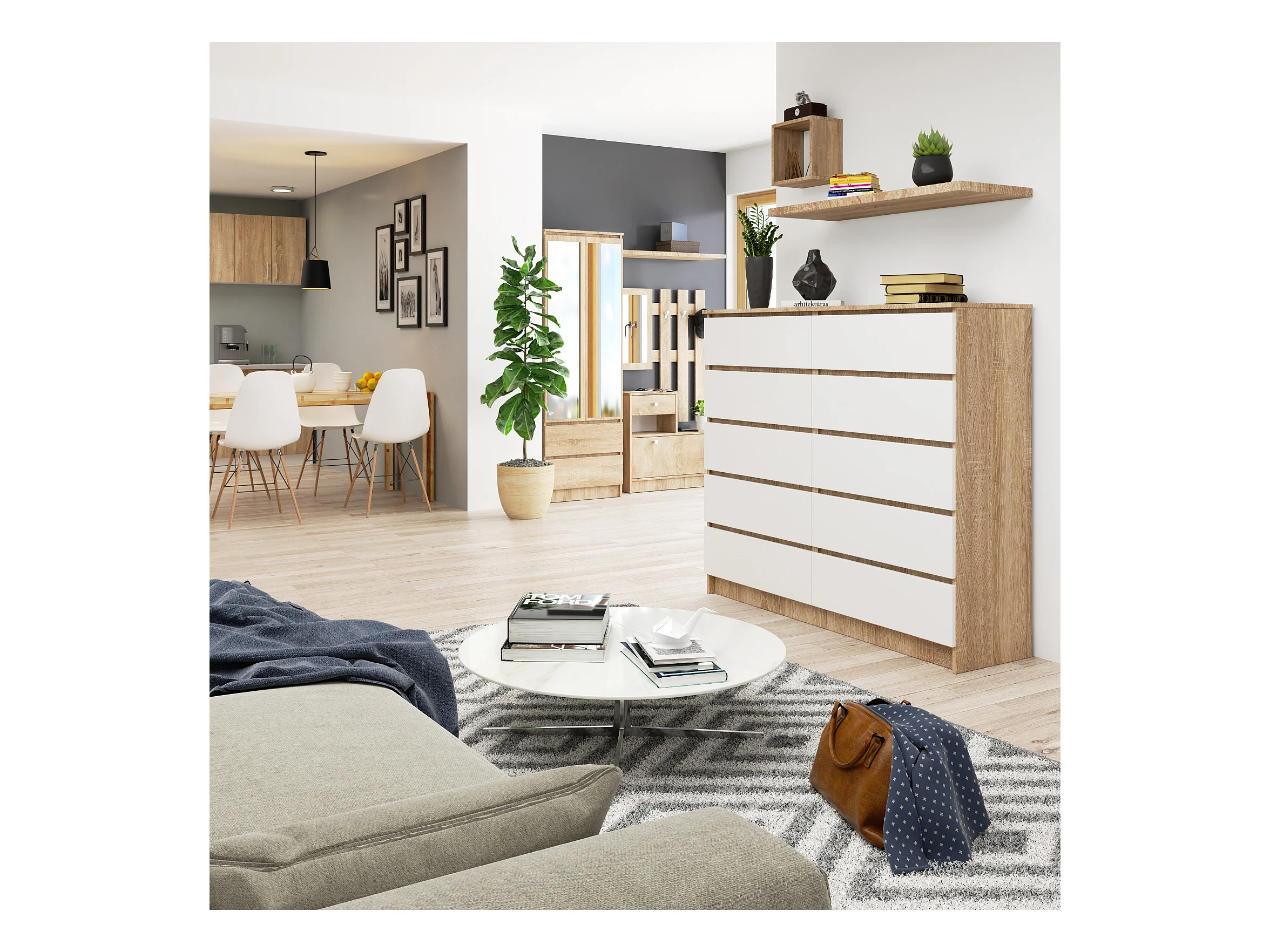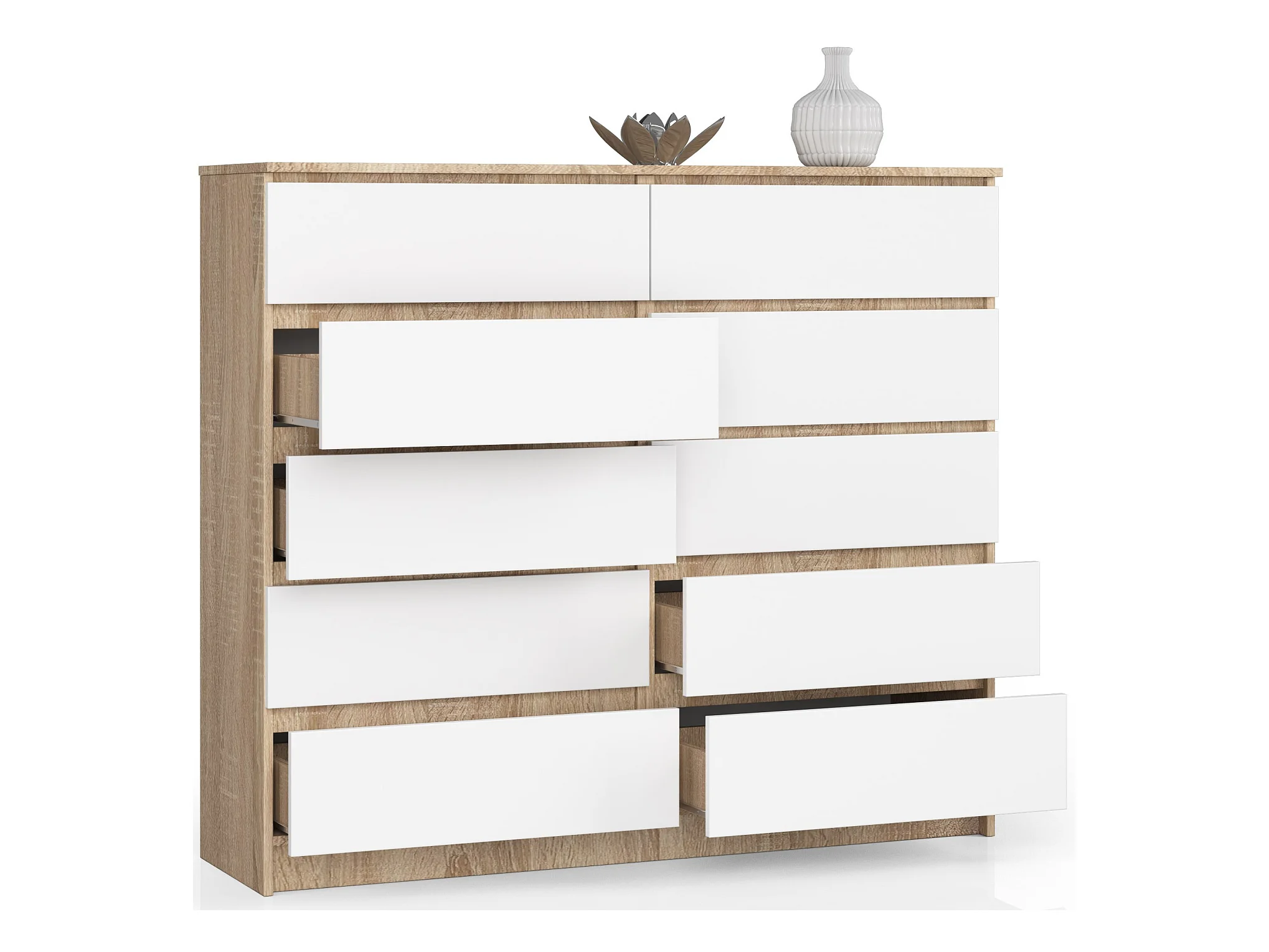 Ladekast K140 met 10 Lades / AKORD Furniture Factory / Sonoma Eik - Wit / 138 x 121 x 40 cm
