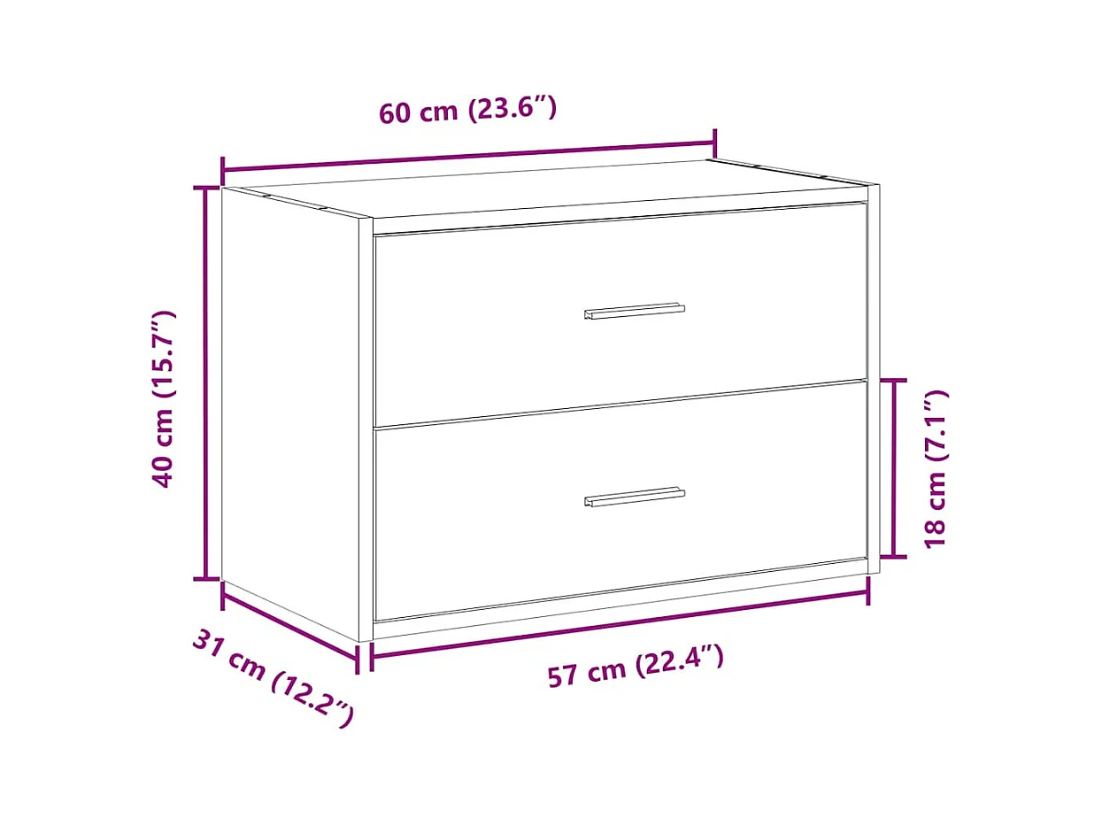 Kasten met 2 lades 2 stuks wit 60x31x40cm bewerkt hout