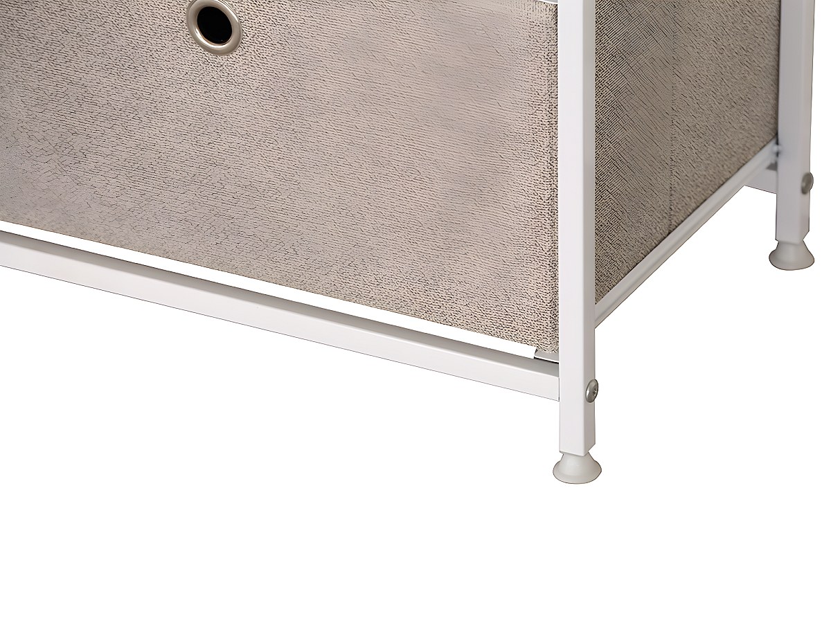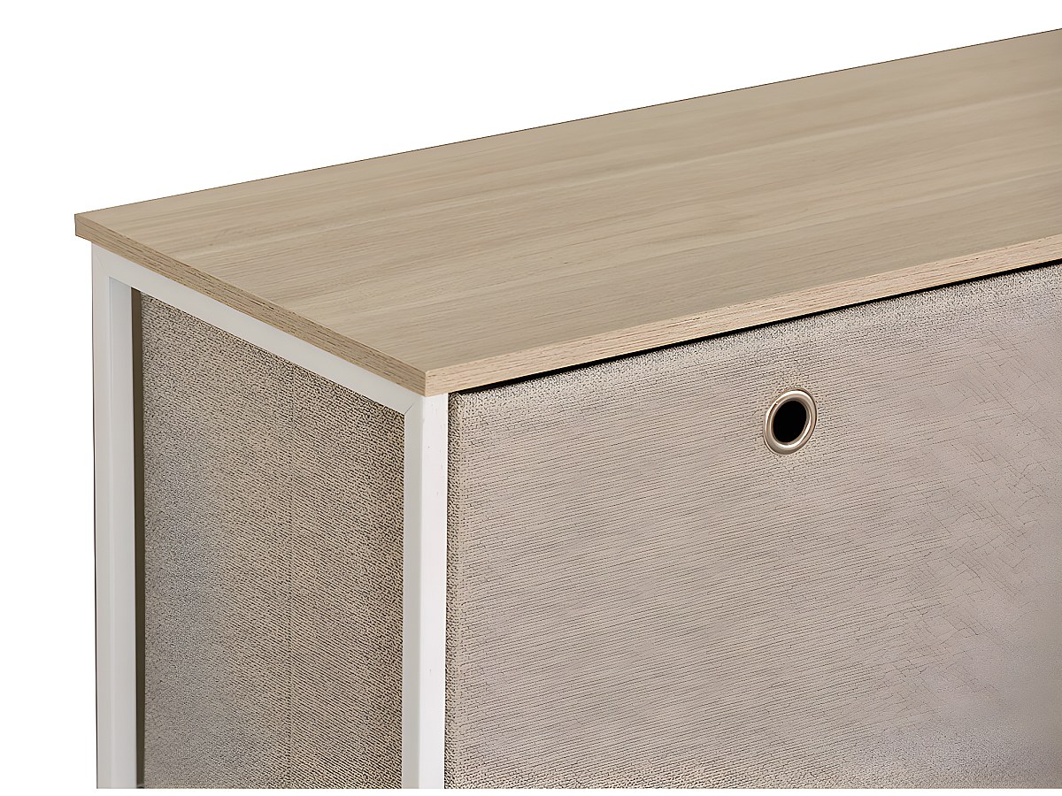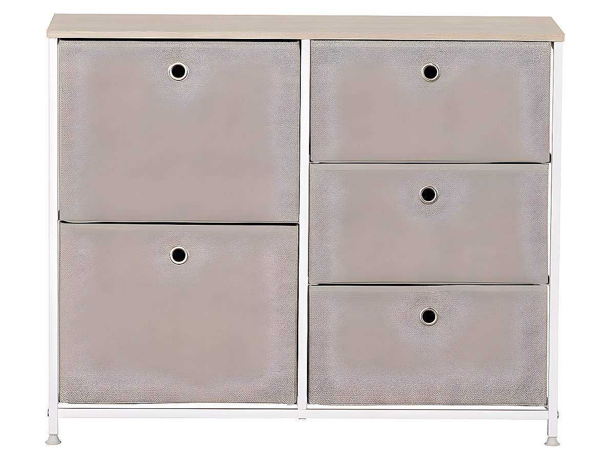 Kast WIMBLEDON - 5 lades - Metaal en stof - Wit en beige