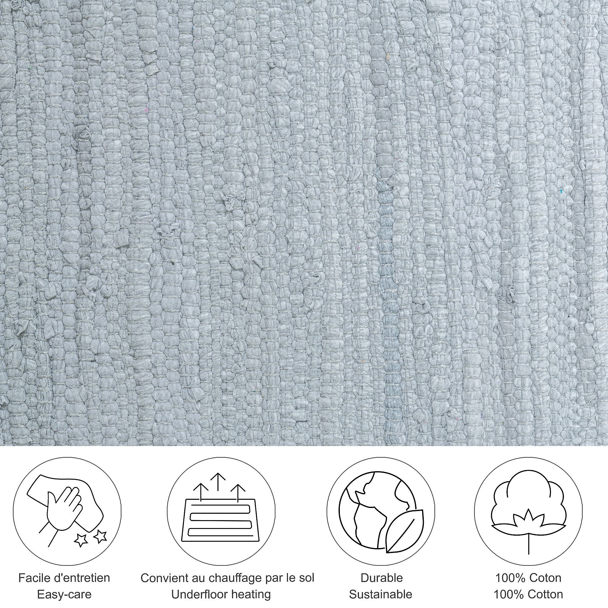 Katoenen tapijt, handgeweven en omkeerbaar 40x60 cm grijs Happy Cotton