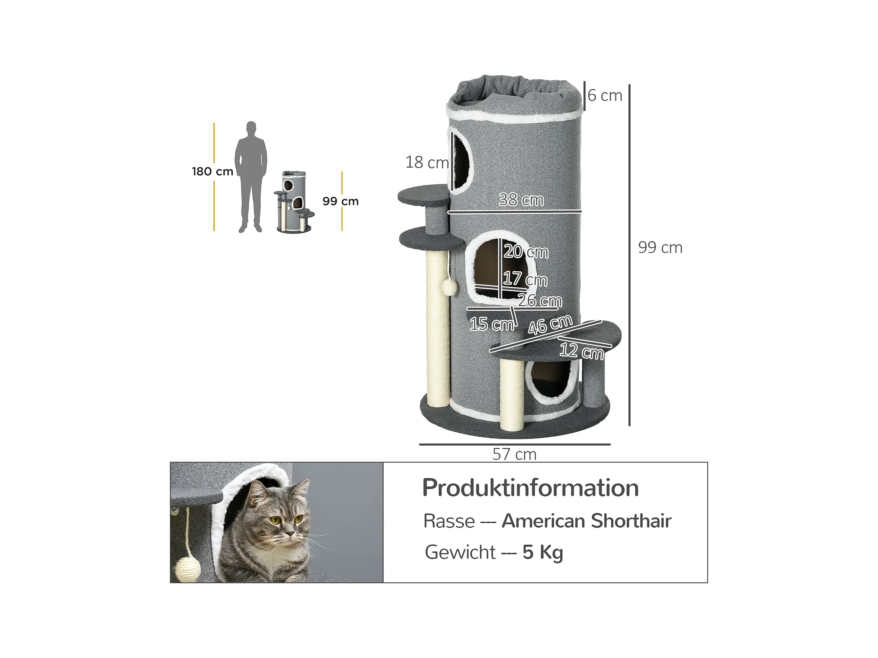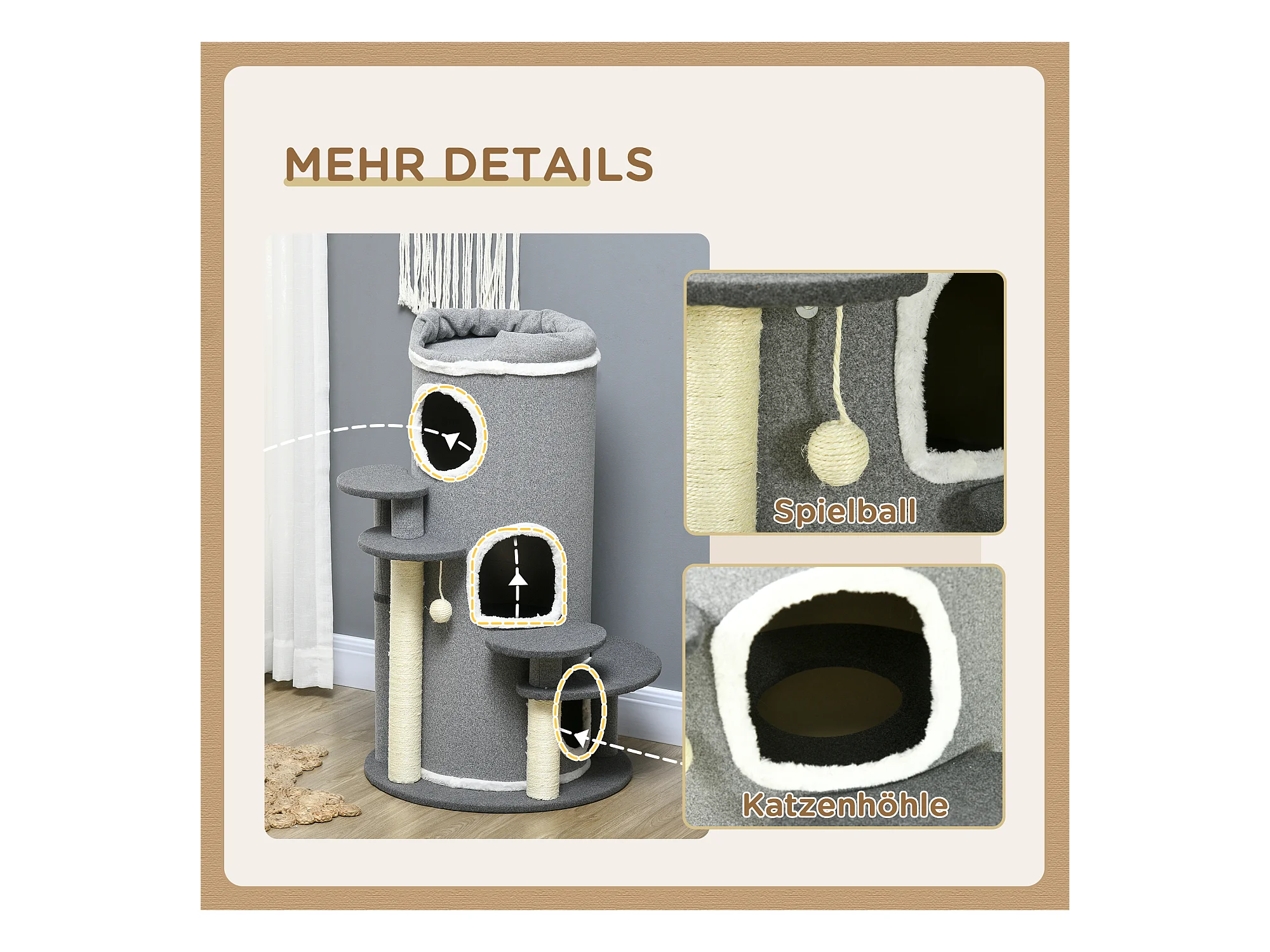 Kattenboom met 4 plateaus, sisal, spaanplaat, grijs (Ø57x99 cm)