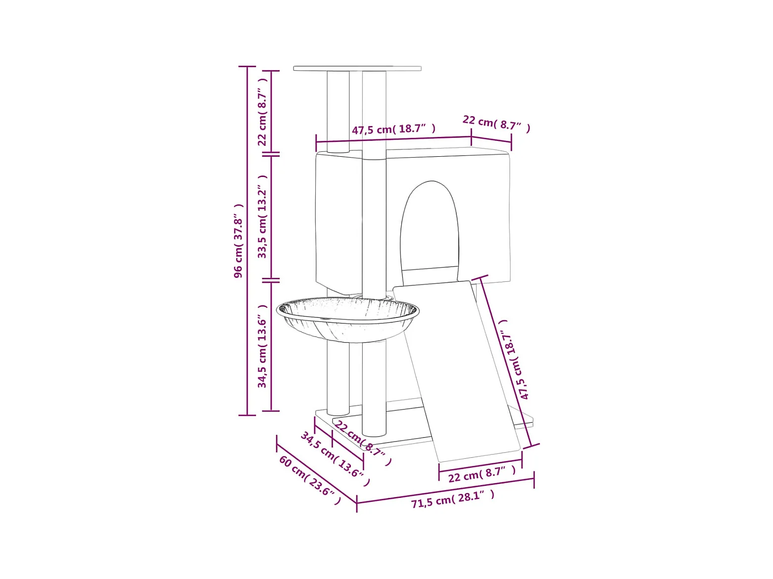 Kattenmeubel met sisal krabpalen 96 cm crèmekleurig