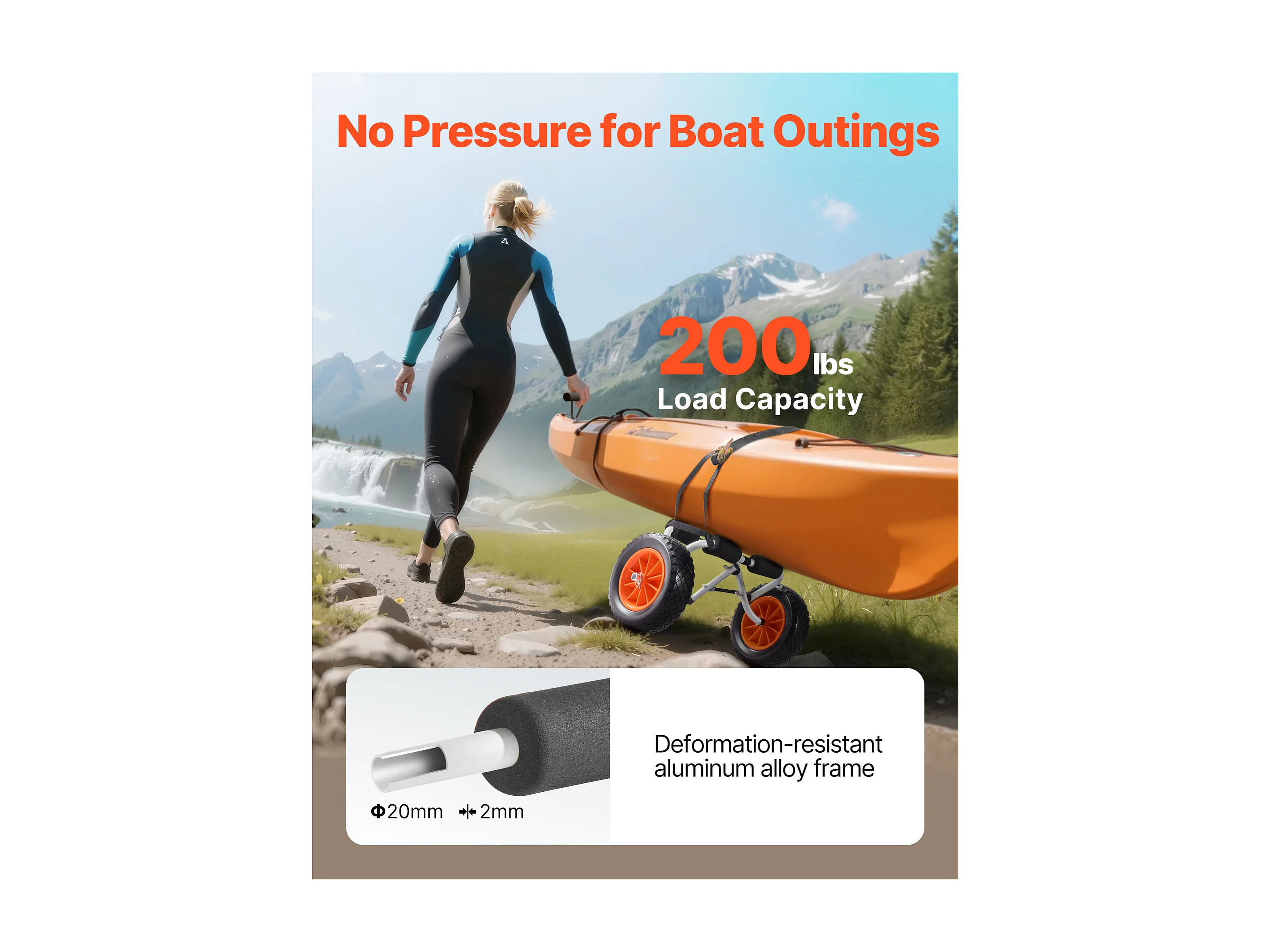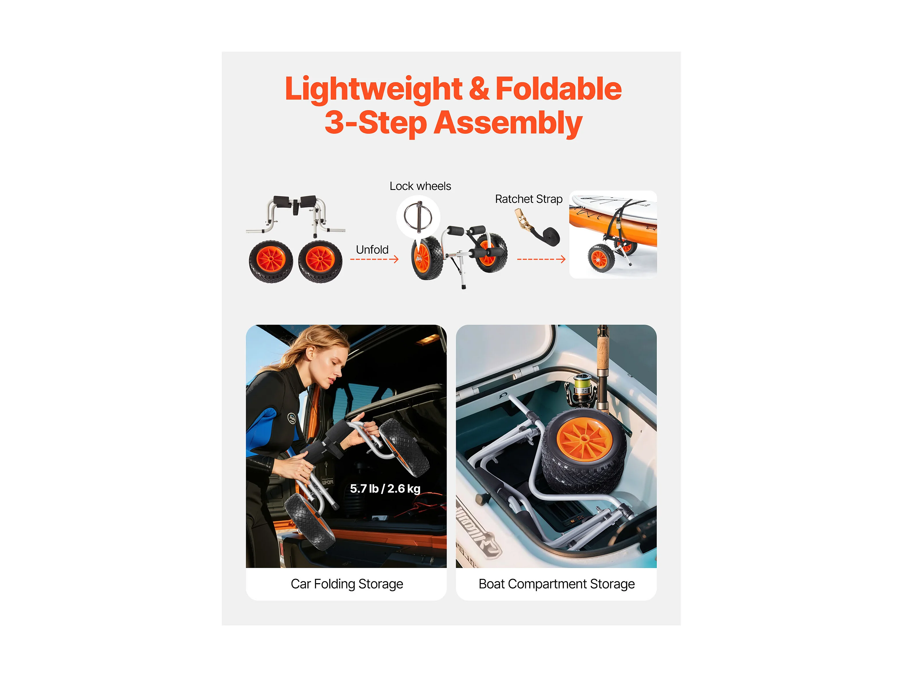Kayakkar SucceBuy, Laadvermogen 90 kg, Paddle Transportkar Inklapbaar Compact, met Volle Rubber Banden 25,4 cm, Steunpoot