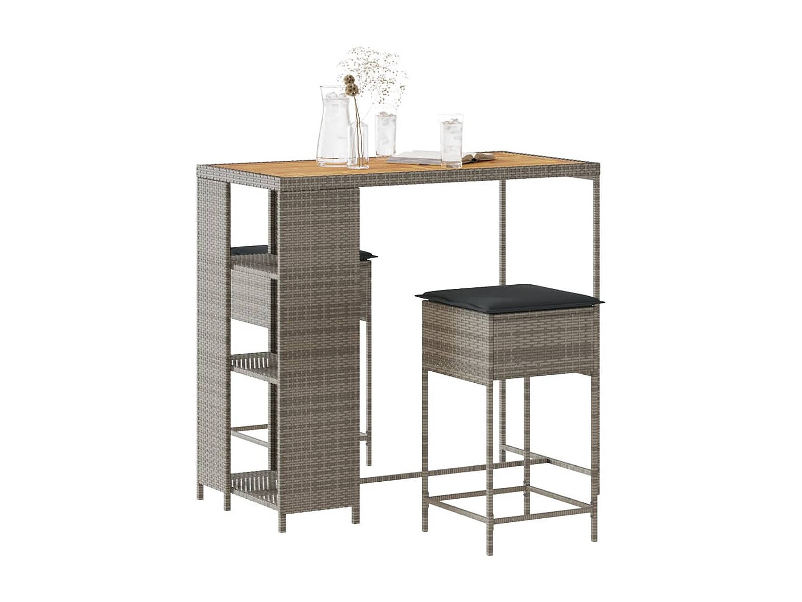 Inarin 3-delige Tuinbarset met kussens poly rattan grijs