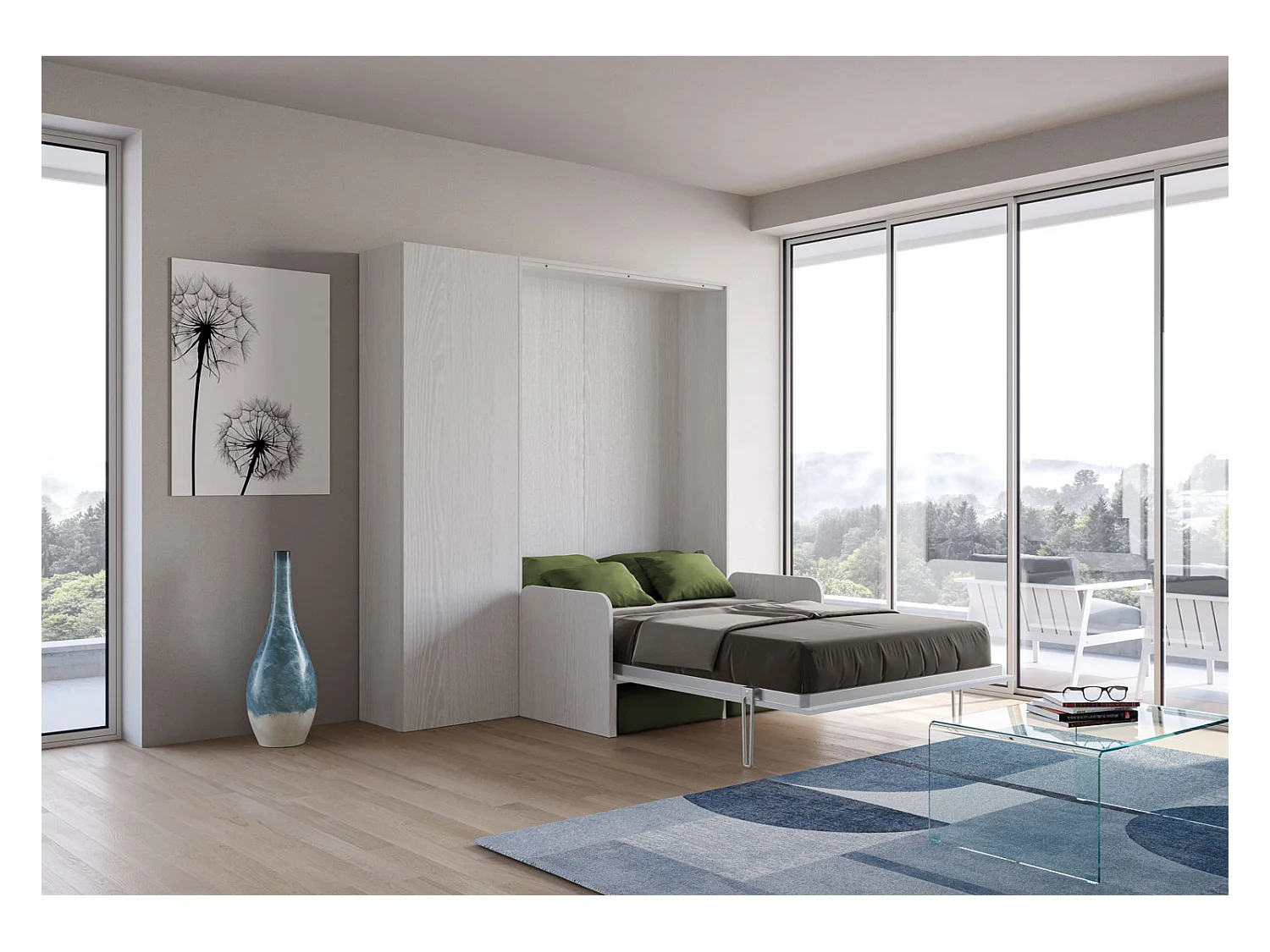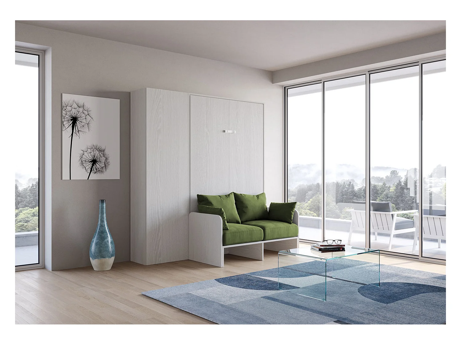 Kentaro 160cm opklapbaar tweepersoonsbed met bank en kolom in wit essen en groen