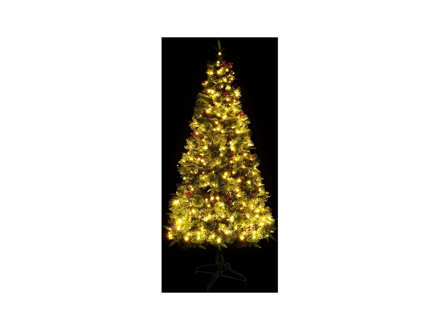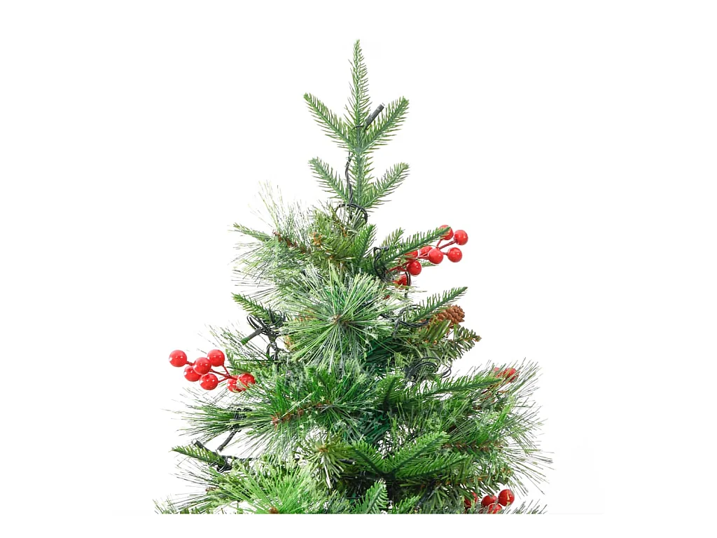 Kerstboom met LED en dennenappels 225 cm PVC en PE groen