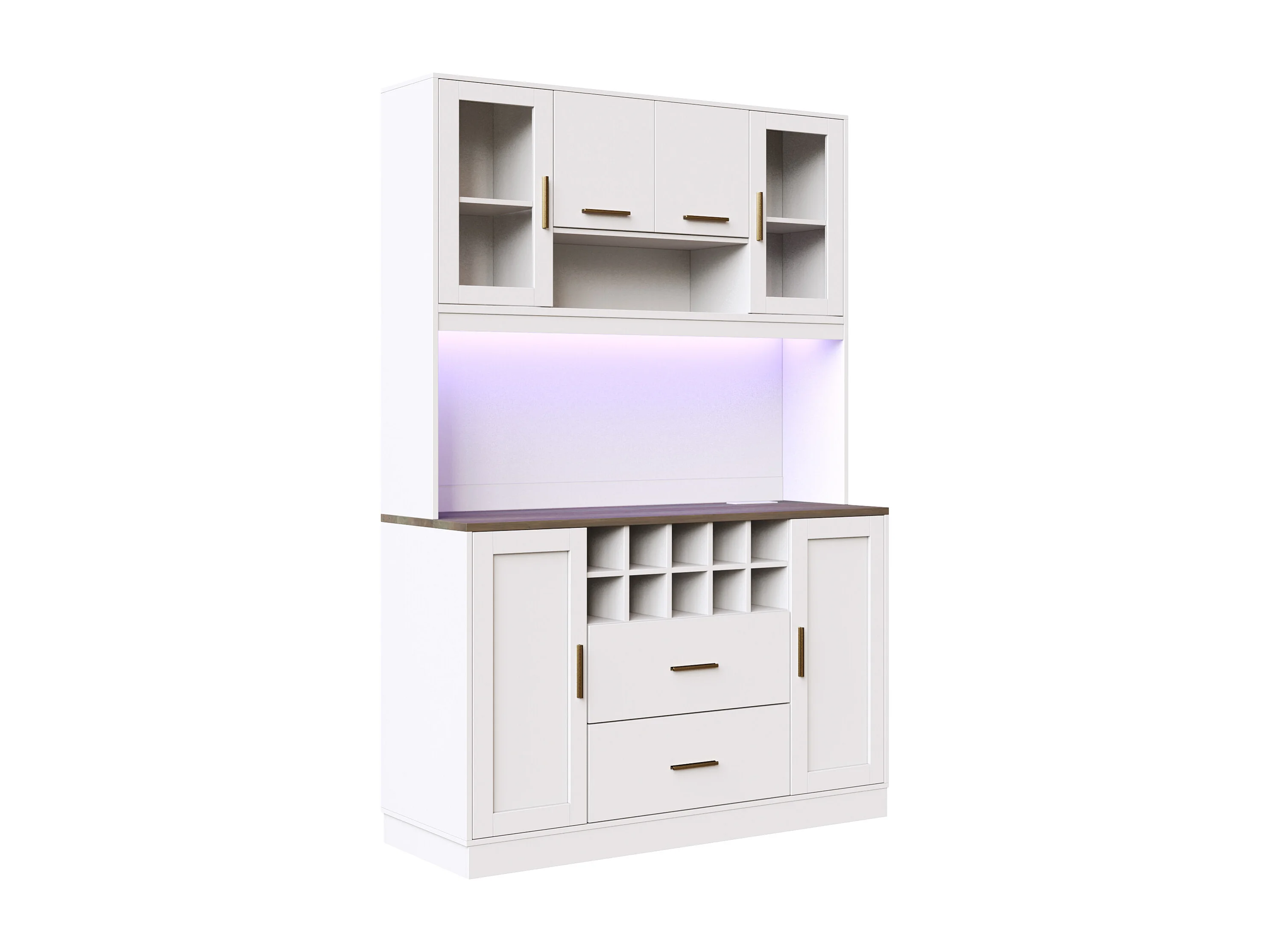 Keuken buffet 120x36x180 cm - 6 deuren en 2 lades - met LED-verlichting en stopcontact - 10 wijnvakken - Wit