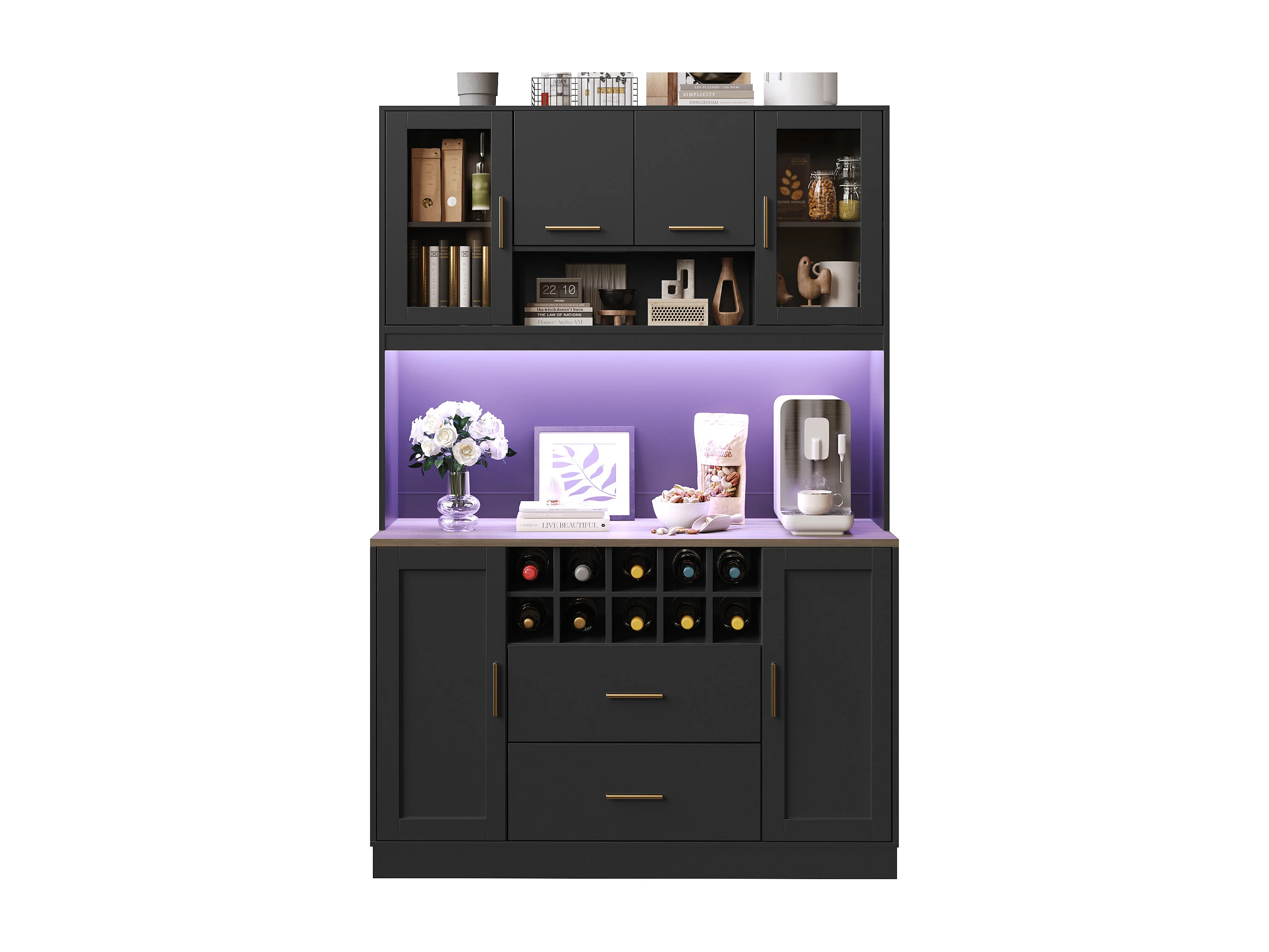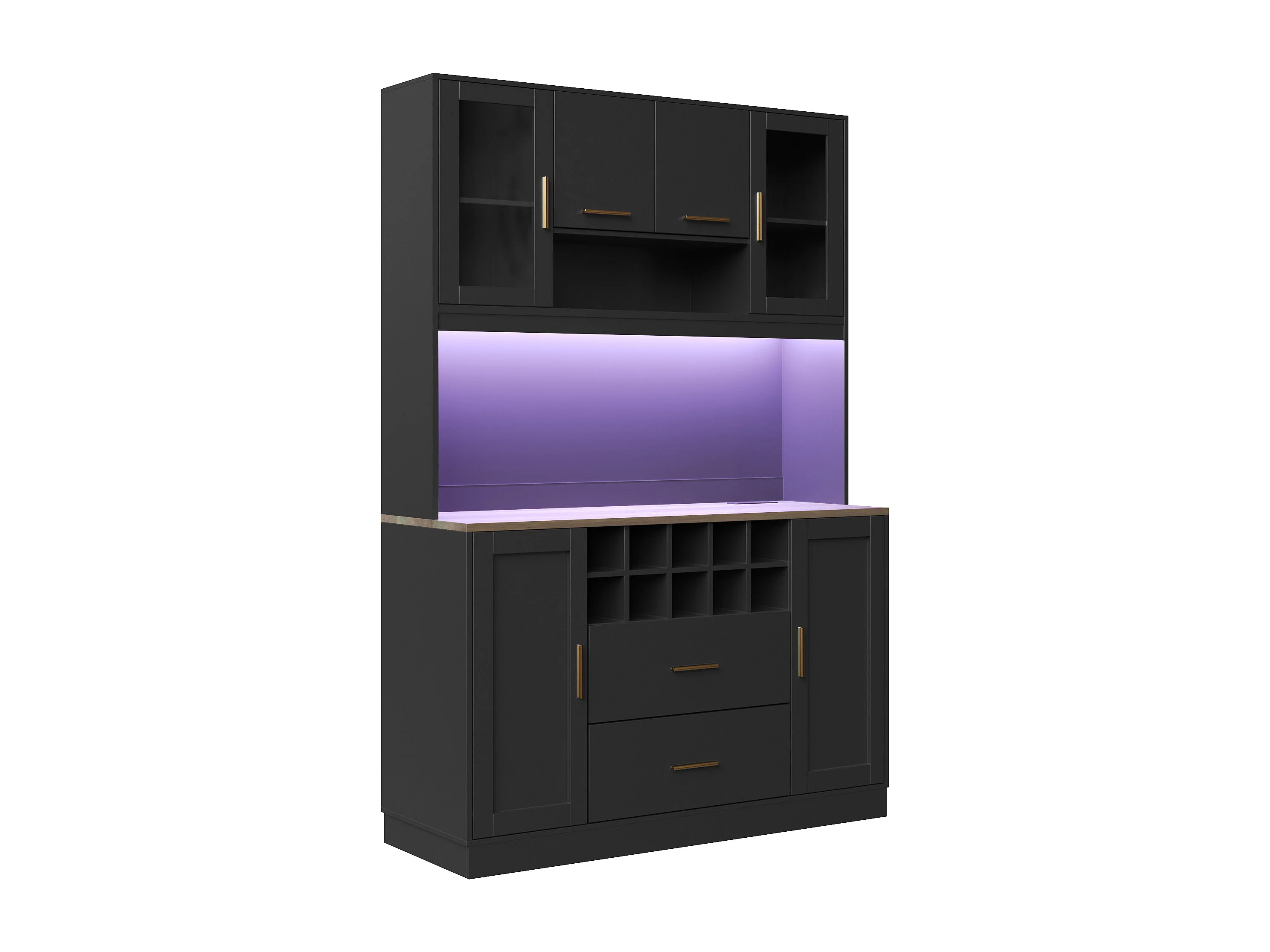 Keuken buffet 120x36x180 cm - 6 deuren en 2 lades - met LED-verlichting en stopcontact - 10 wijnvakken - Zwart