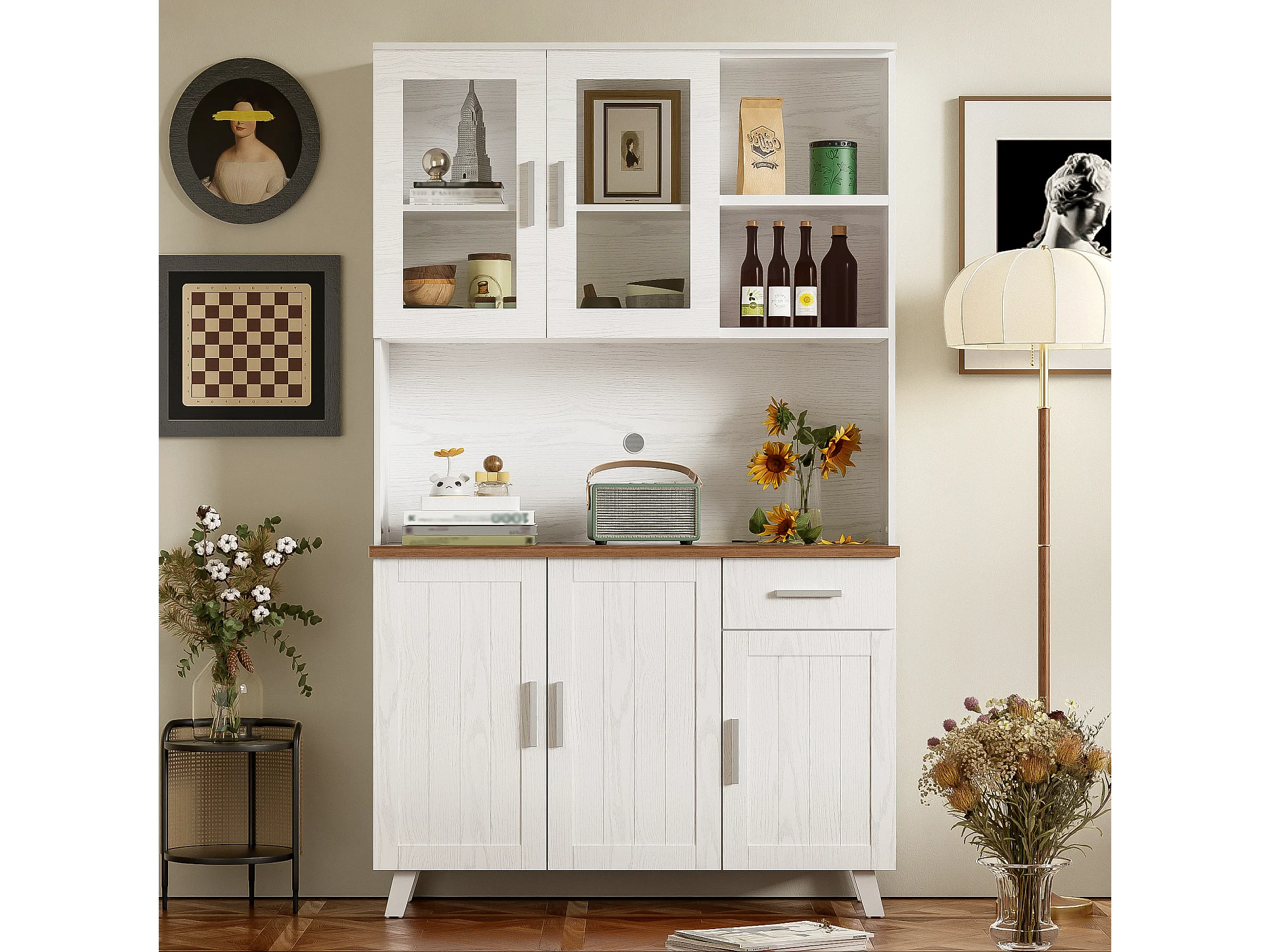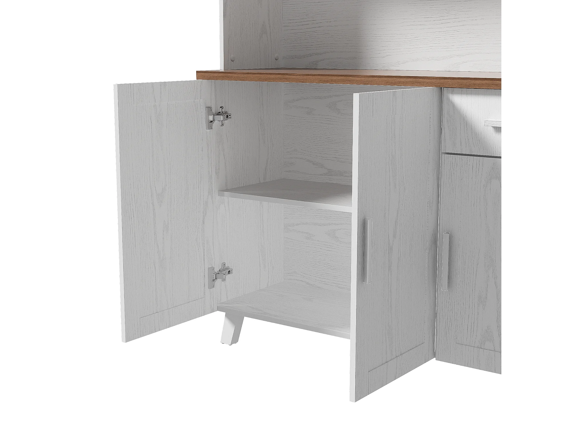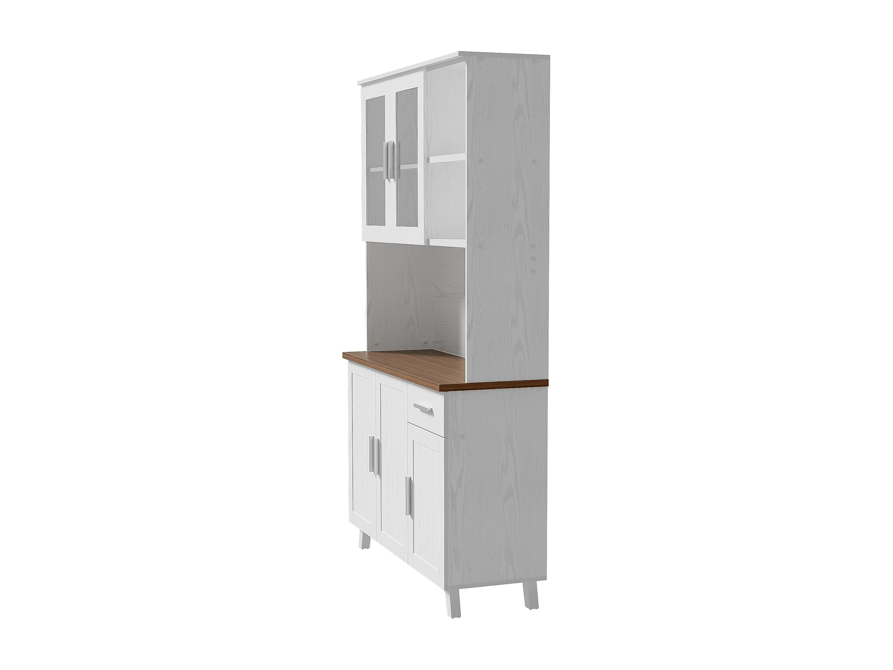 Keuken dressoir 114,5x40x190cm met 5 deuren, 1 lade en 2 nissen, body in wit en bruin houtnerf fineer