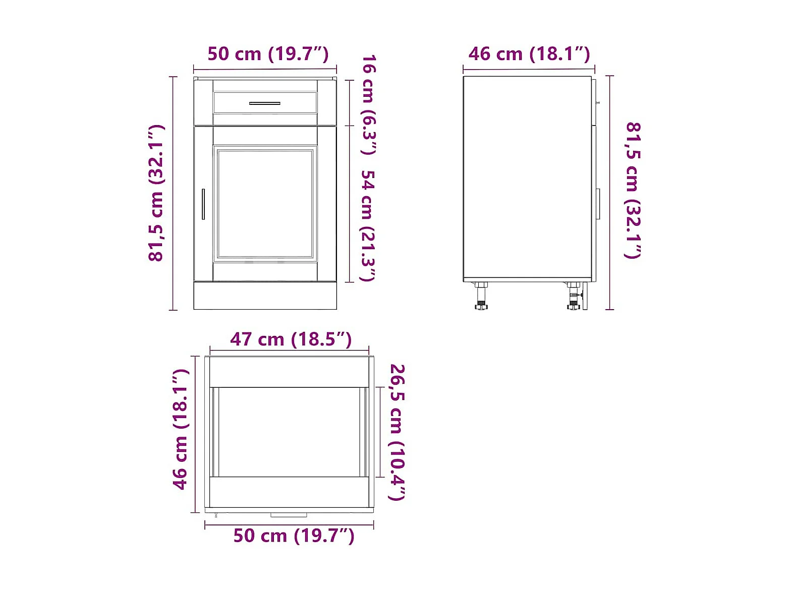 Onderkast met lade Lyon 50x46x81,5 cm bewerkt hout oud houtkleurig
