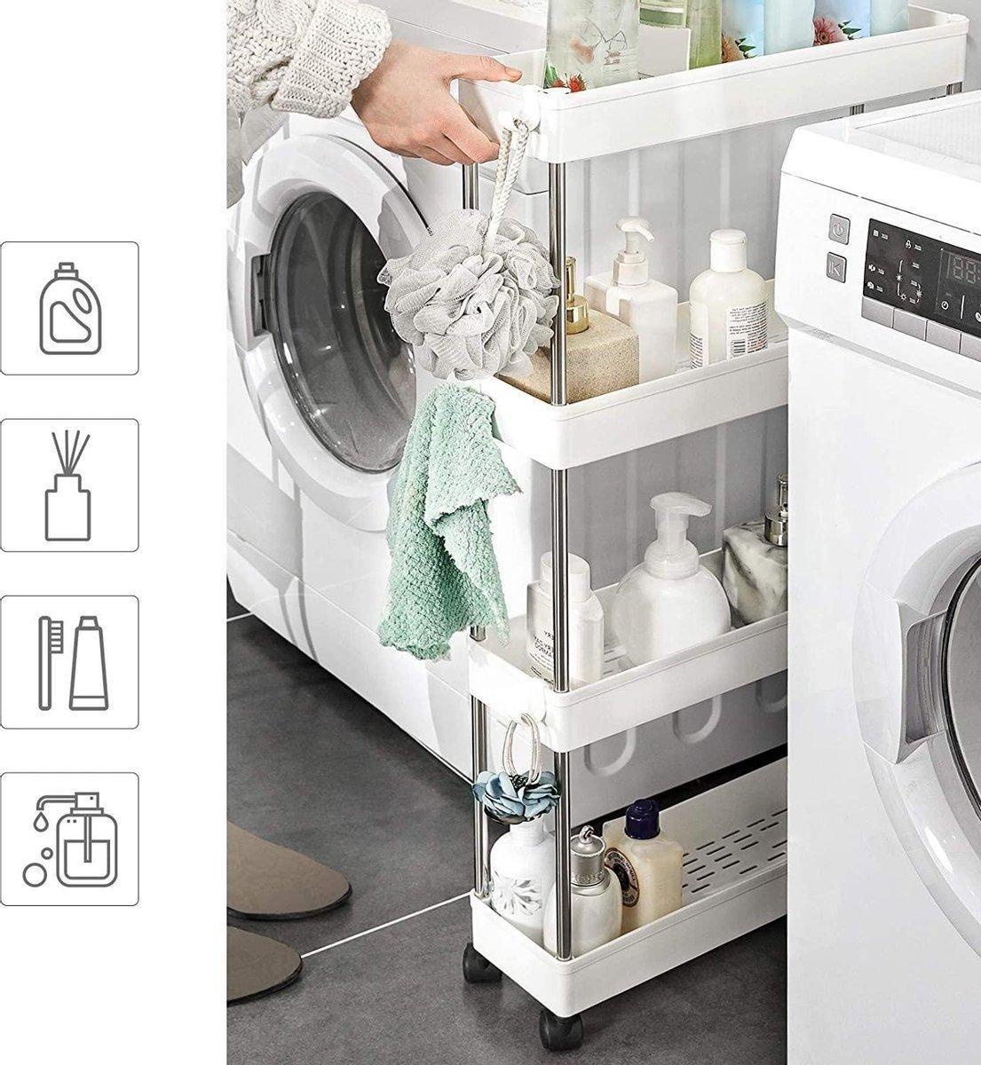 SoBuy NSR12-W - Ruimtebesparende keuken/badkamer trolley met 4 planken L50cm x B14.5cm x H14.5cm...