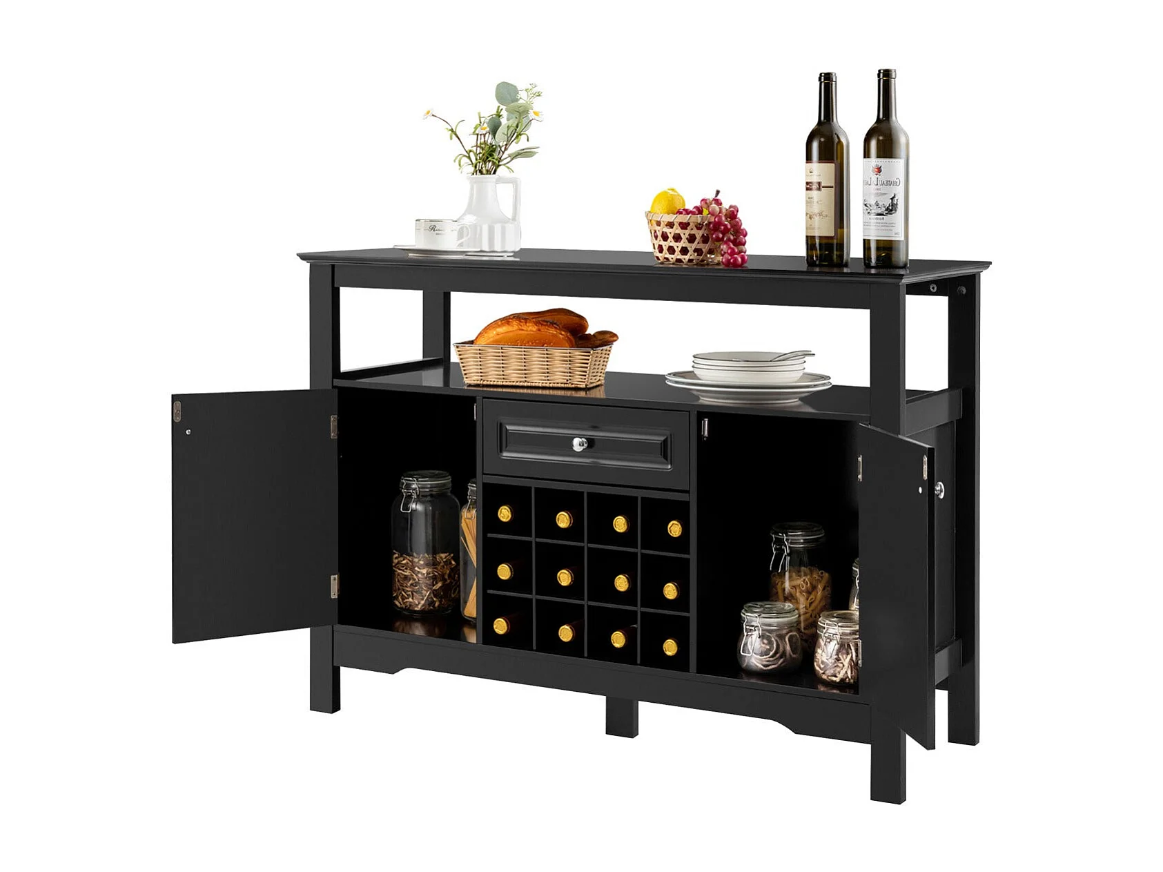 Keukendressoir met wijnrek en 2 kasten voor eetkamer 117 x 40,5 x 82,5 cm Zwart