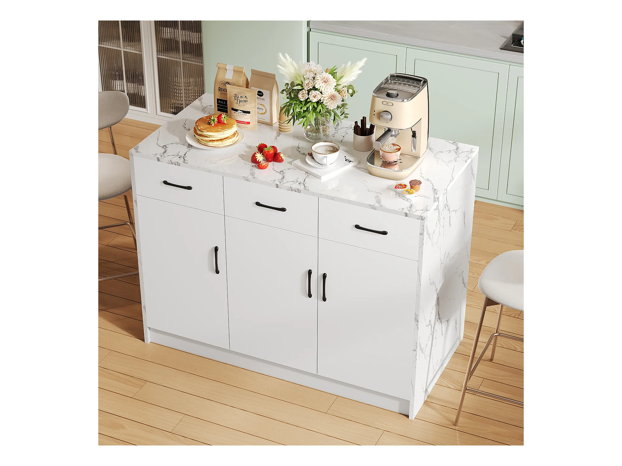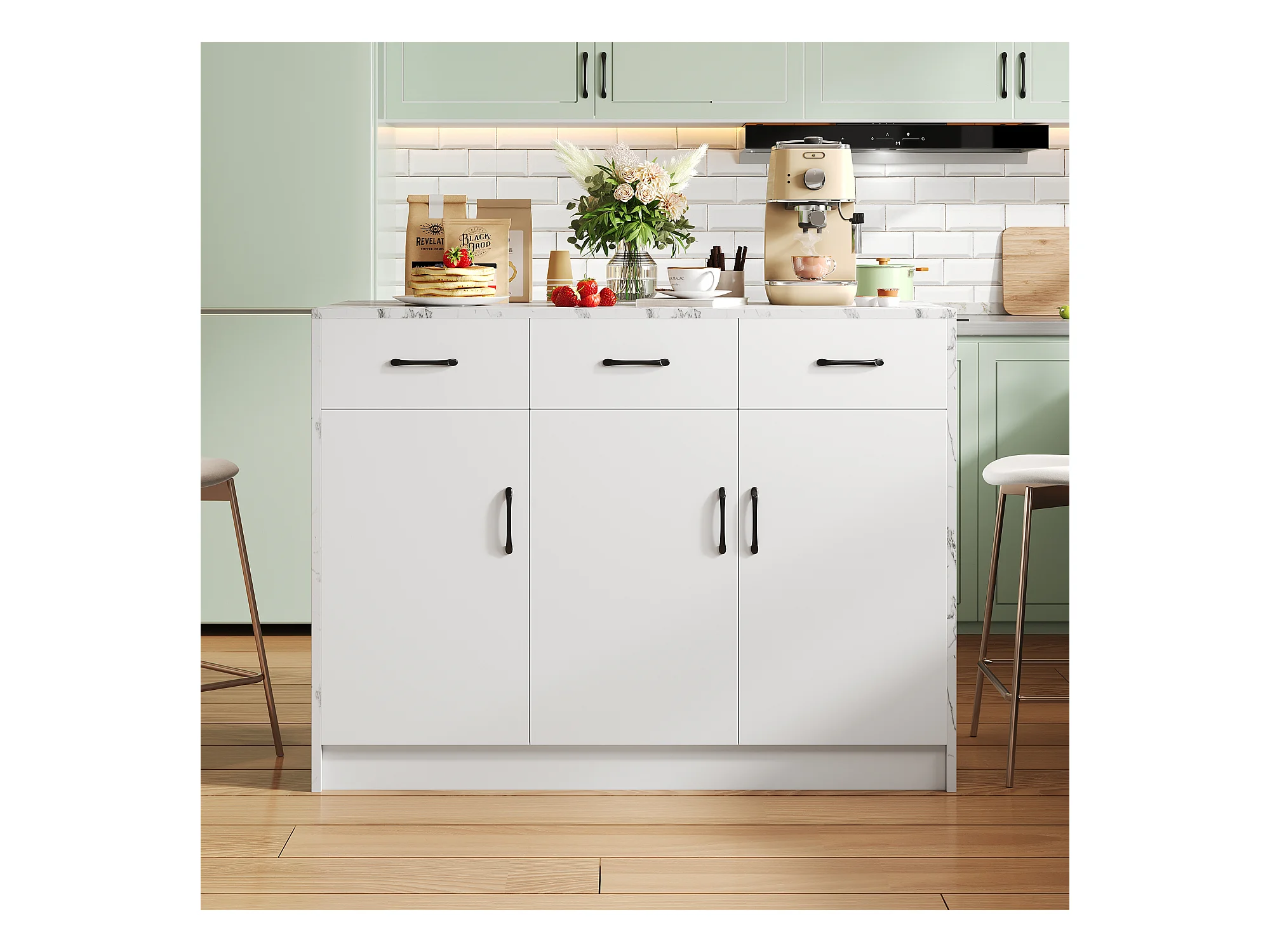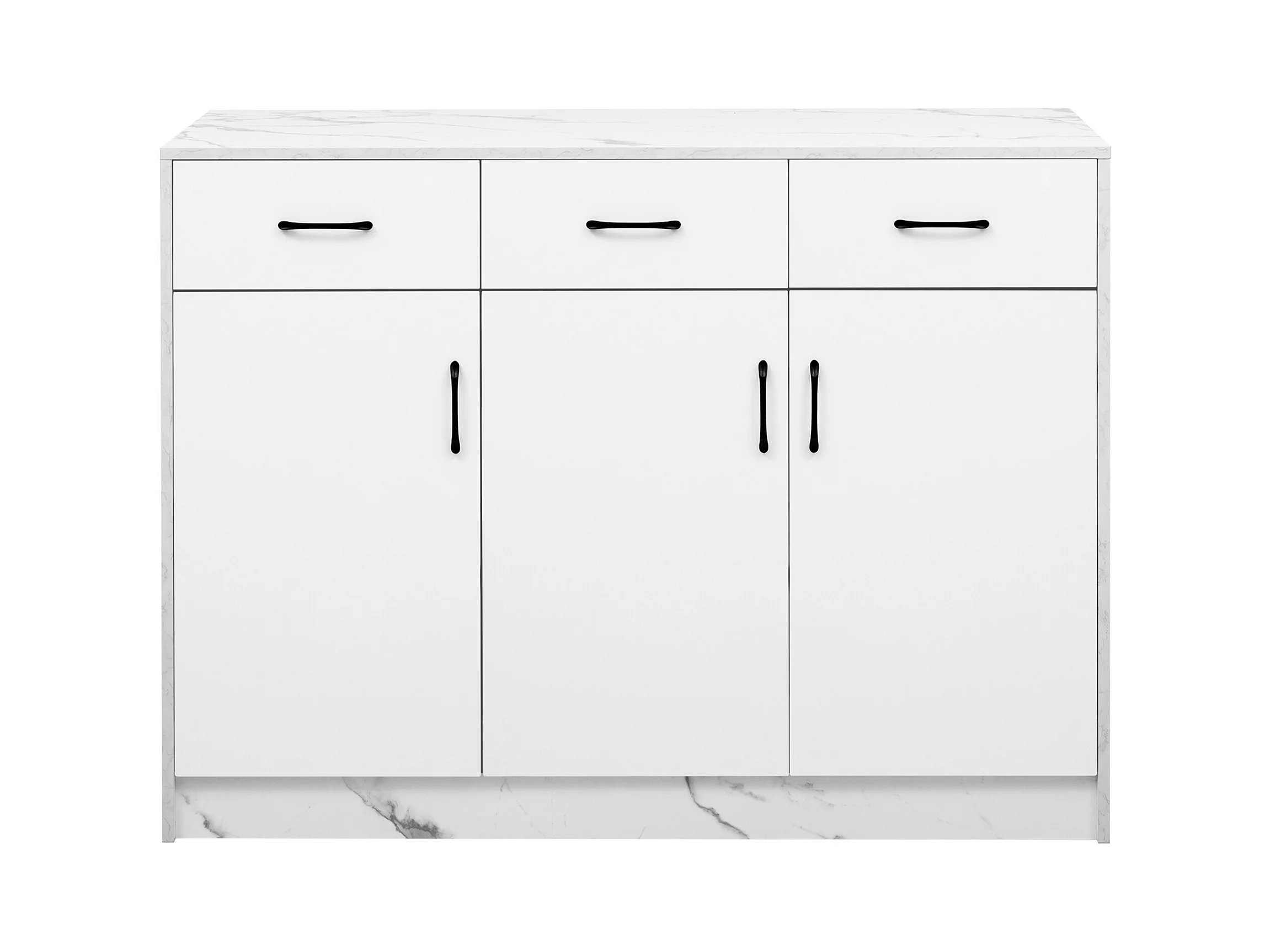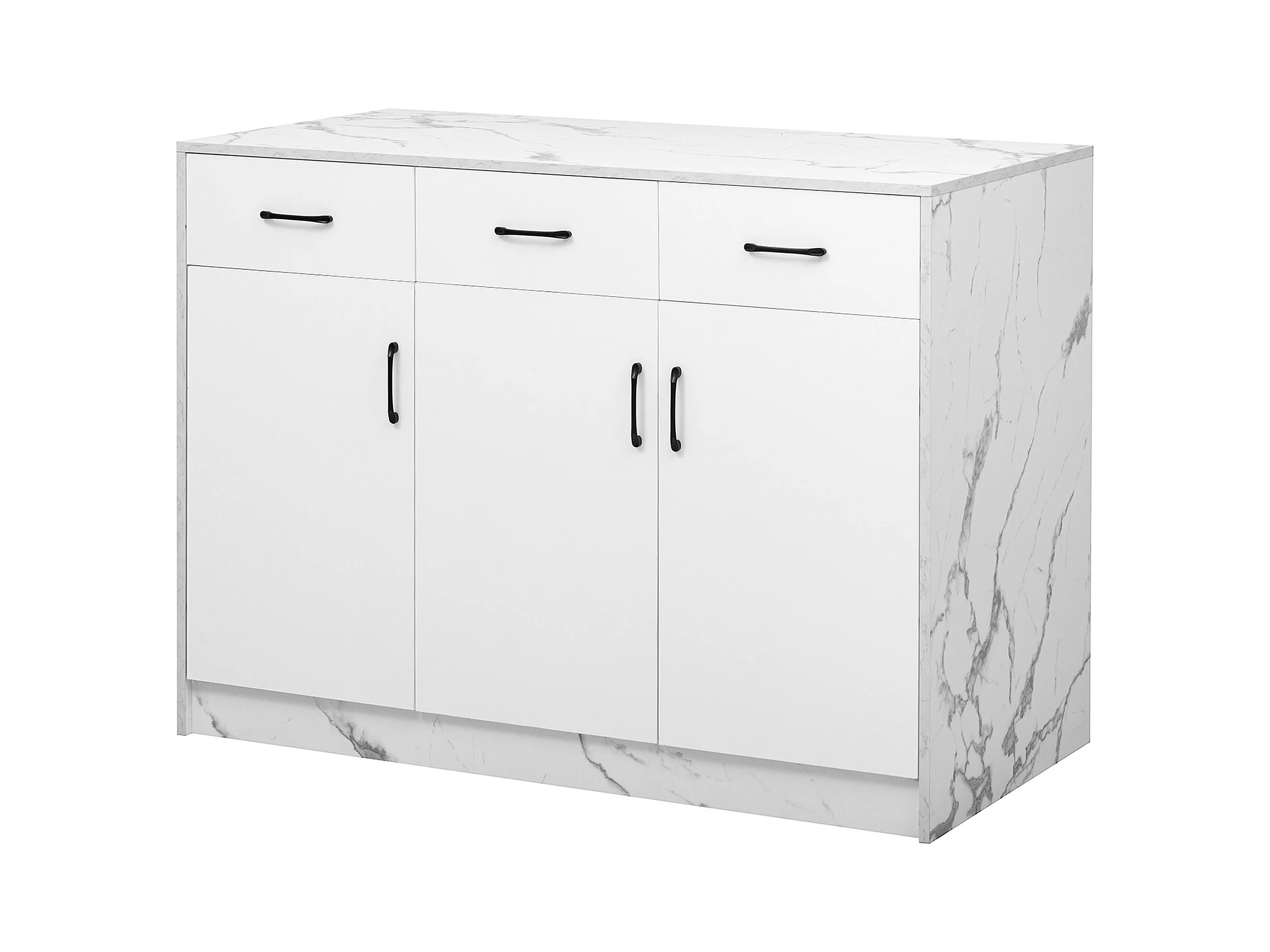 Keukeneiland met 3 deuren en 3 laden - 112 x 60 x 90,5 cm - Marmerlook blad - MDF hout - Wit