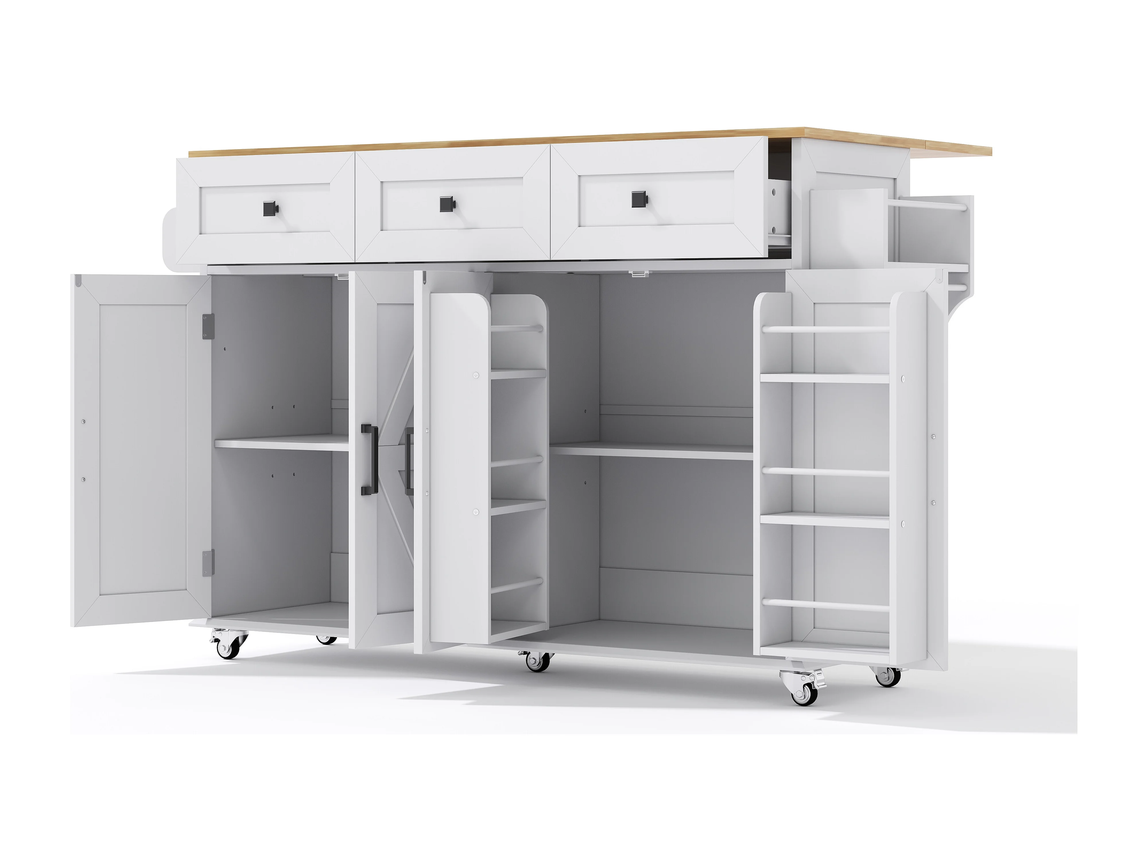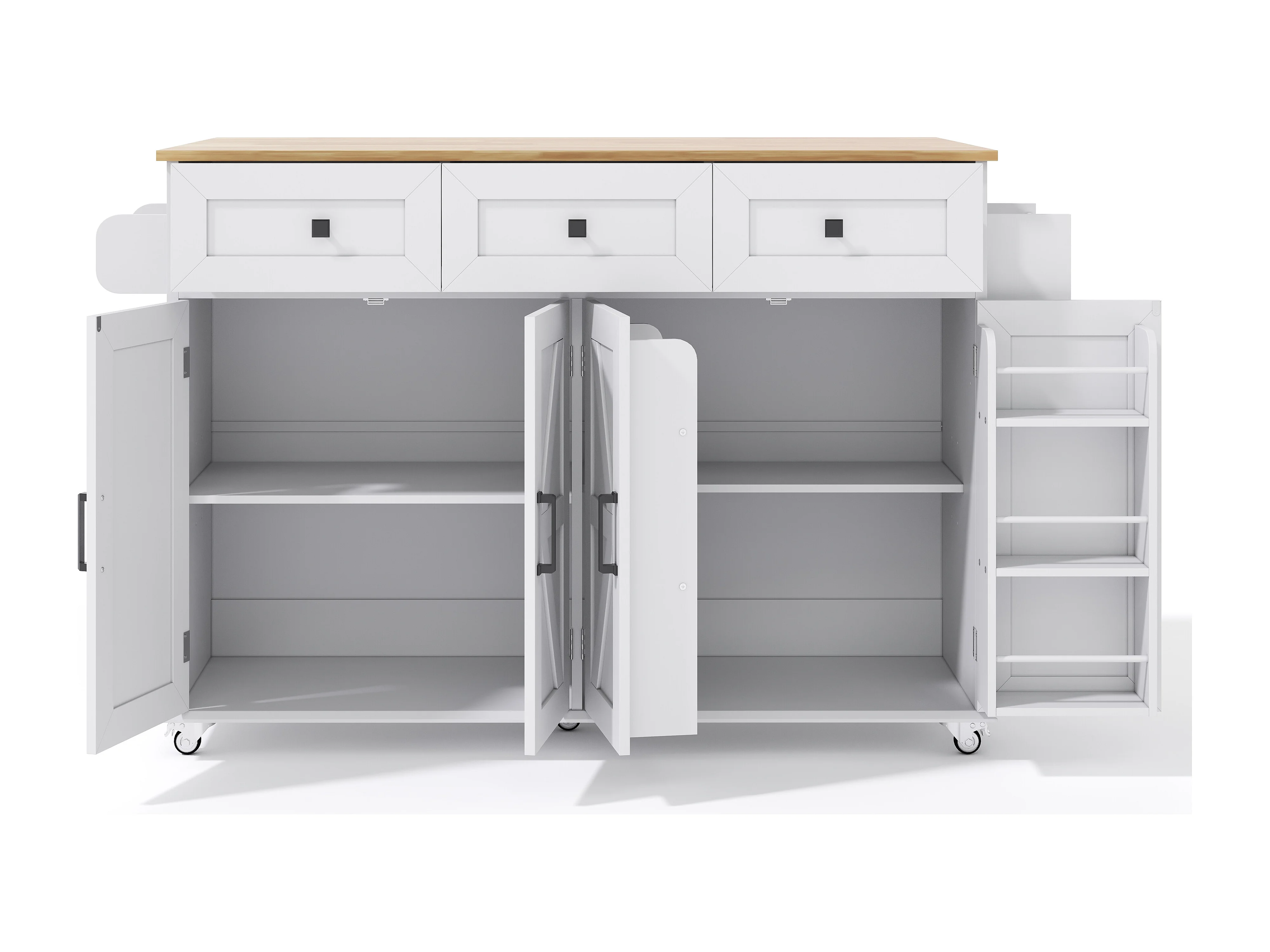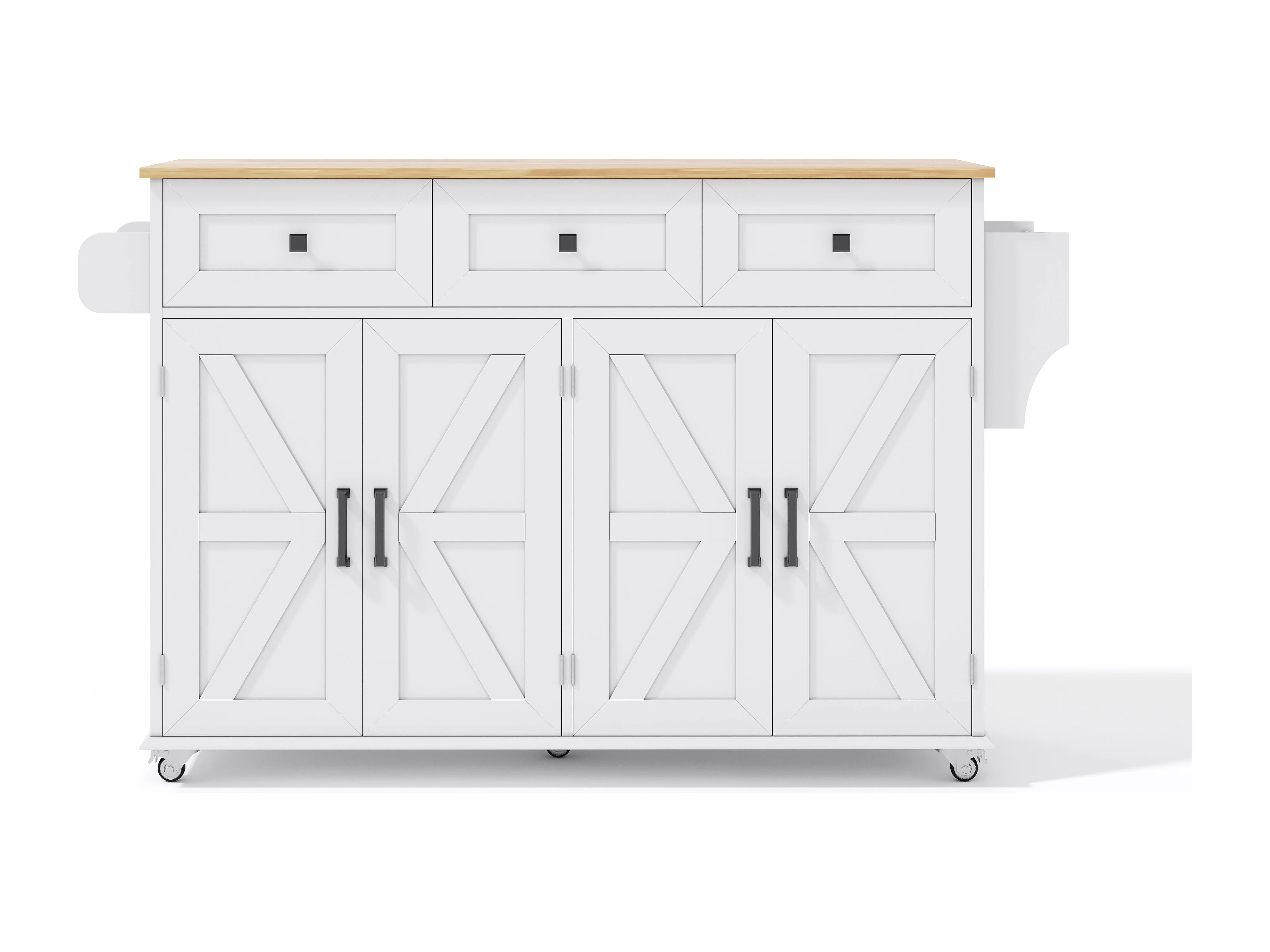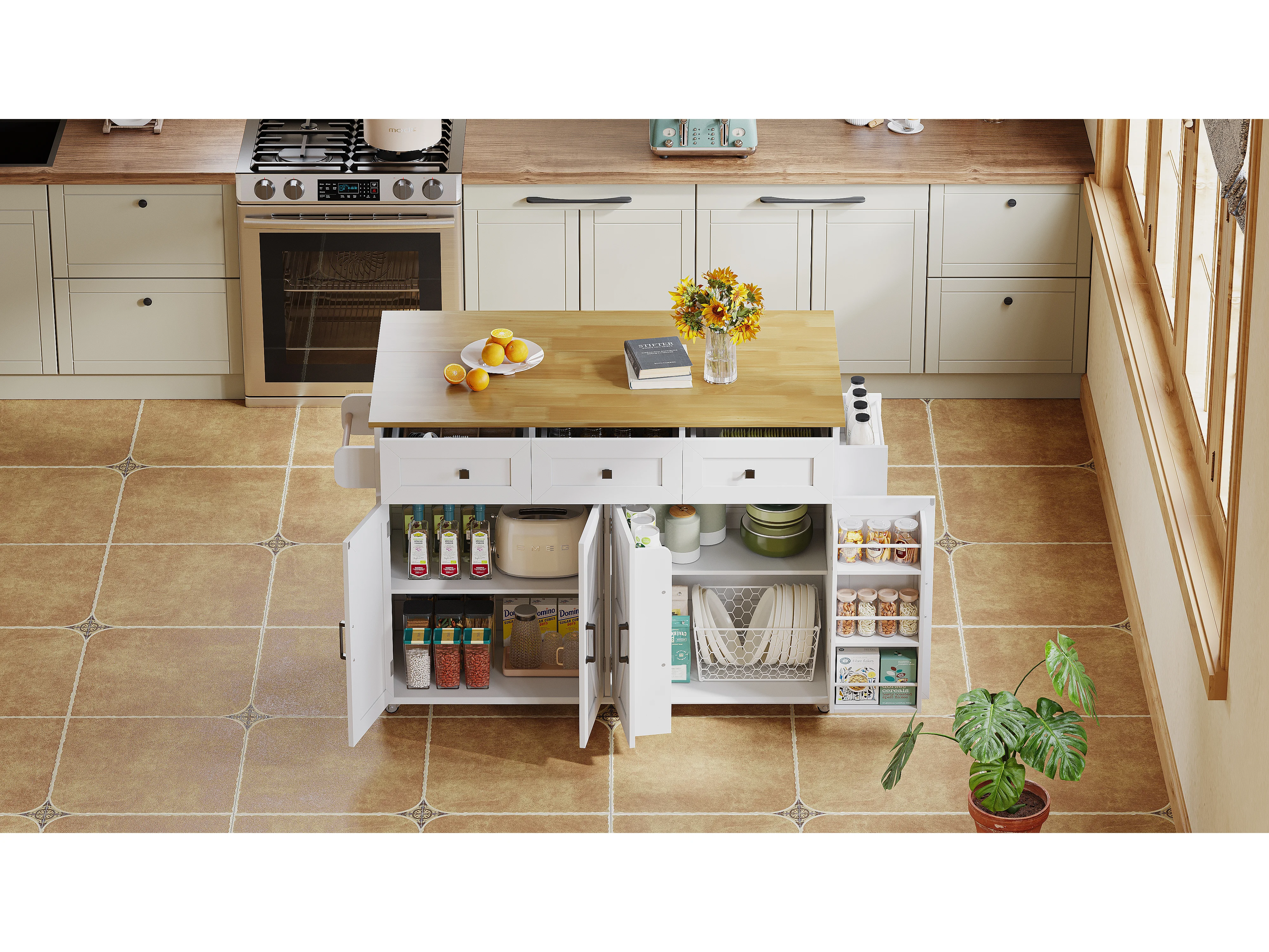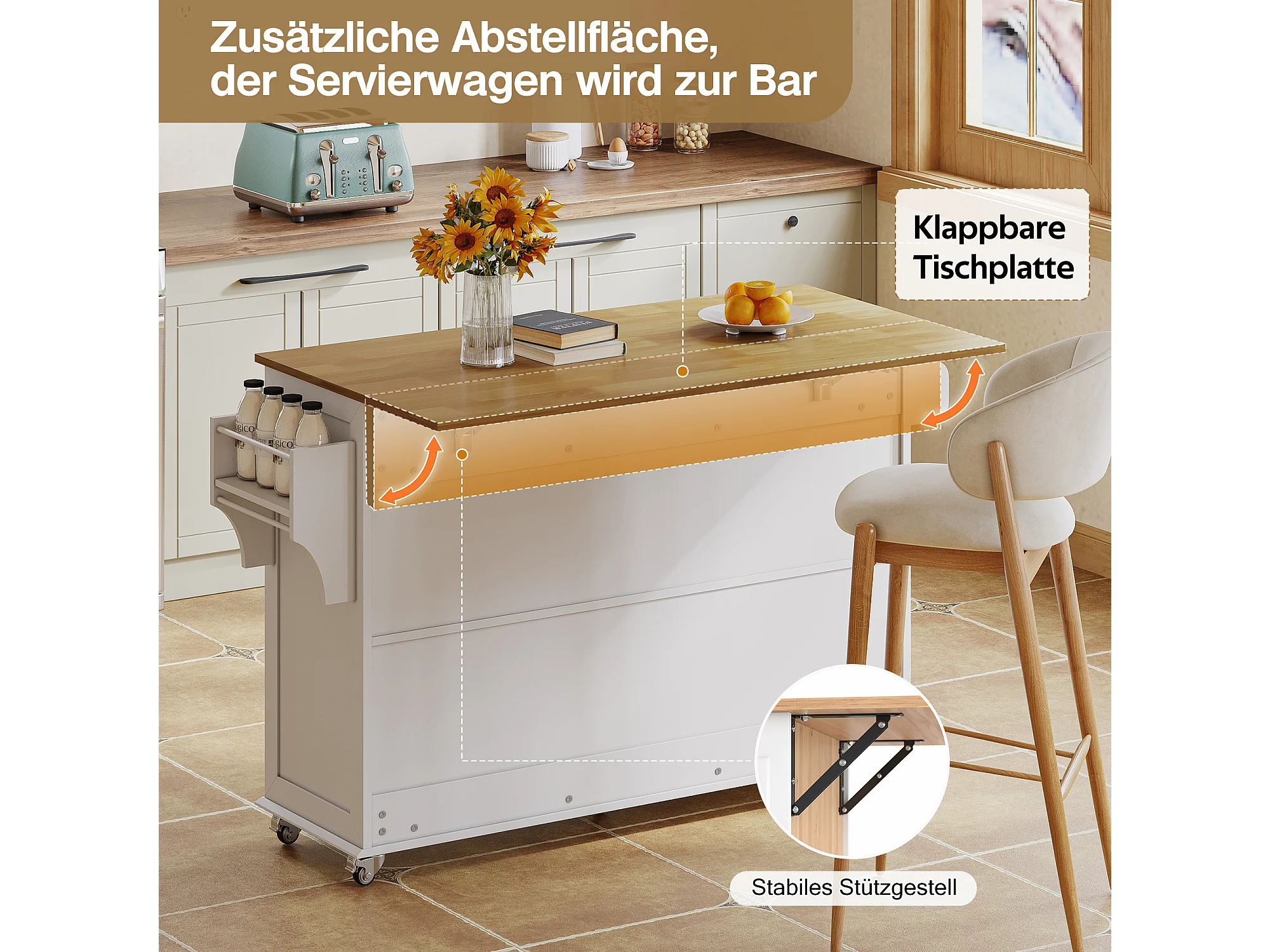 Keukeneiland met 4 deuren en 3 lades - Verstelbare plank - Wit en naturel