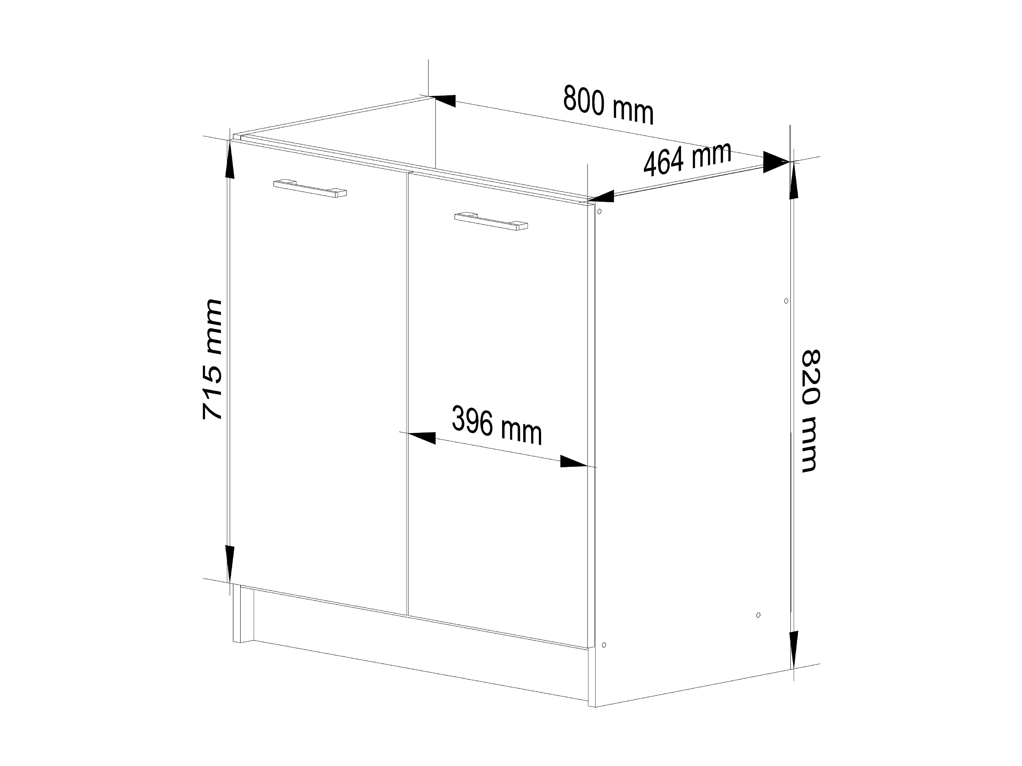 Keukenkastje Onder Spoelbak Oliwia S 80cm Wit-Metallic Hoogglans