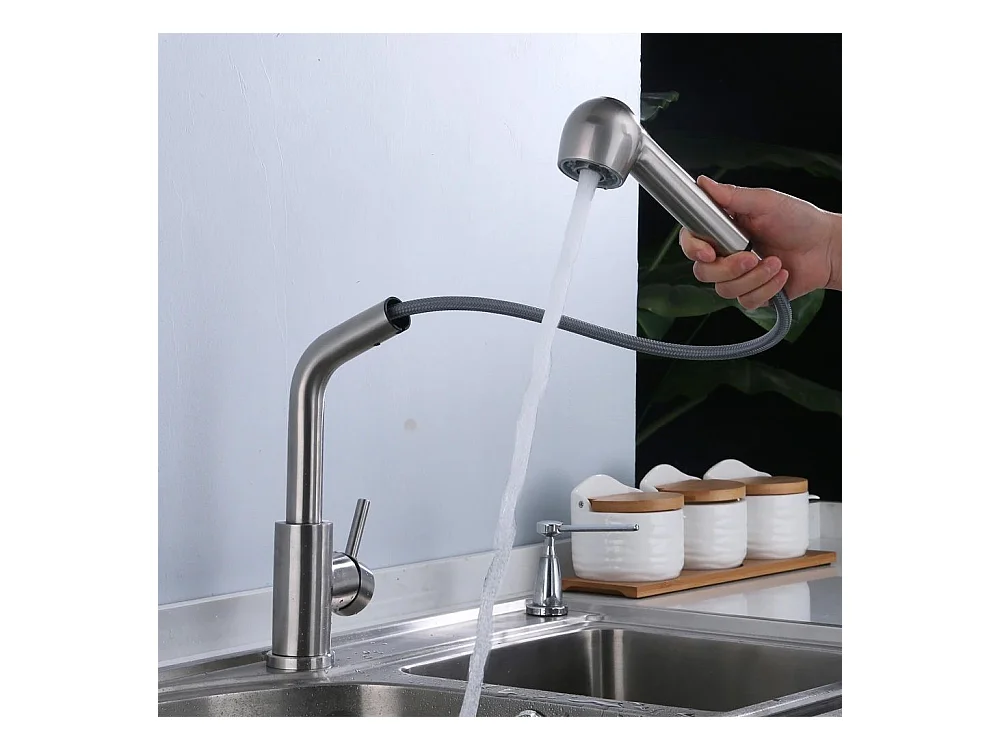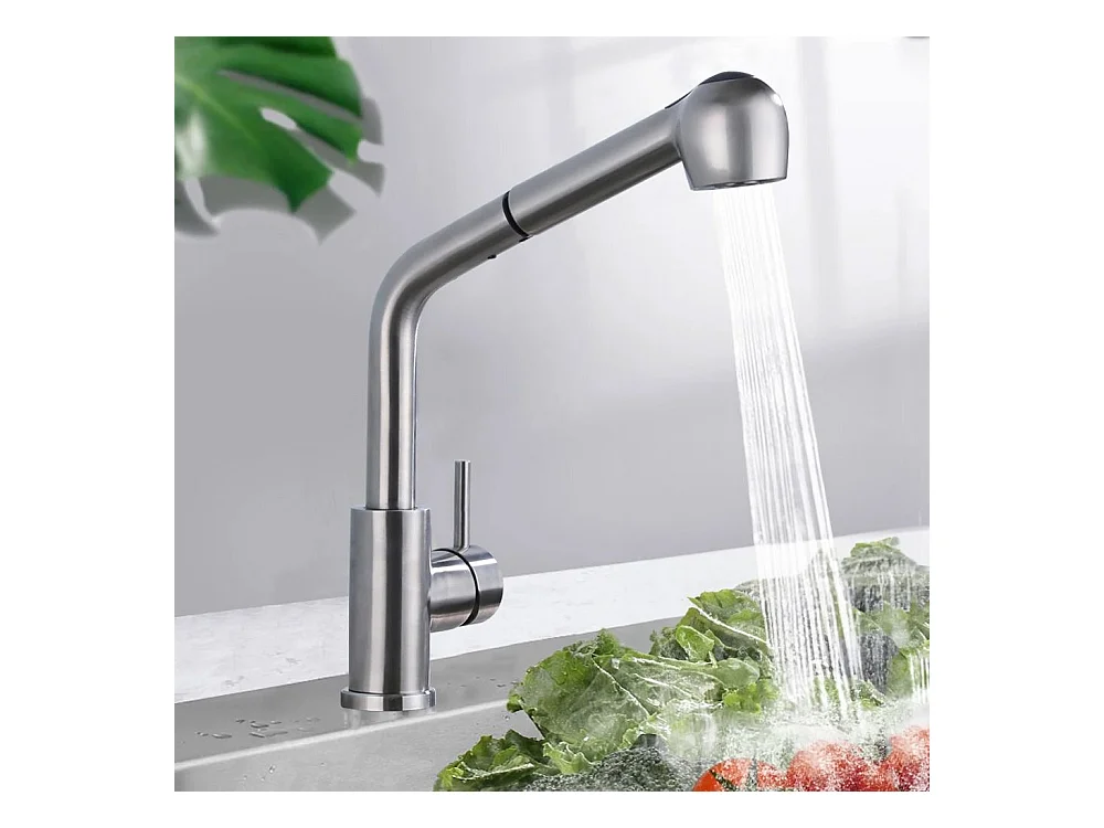 Wastafelmengkraan met flexibele uitloop, keukenkraan, keuken 360° draaibare flexibele mengkraan, grijs