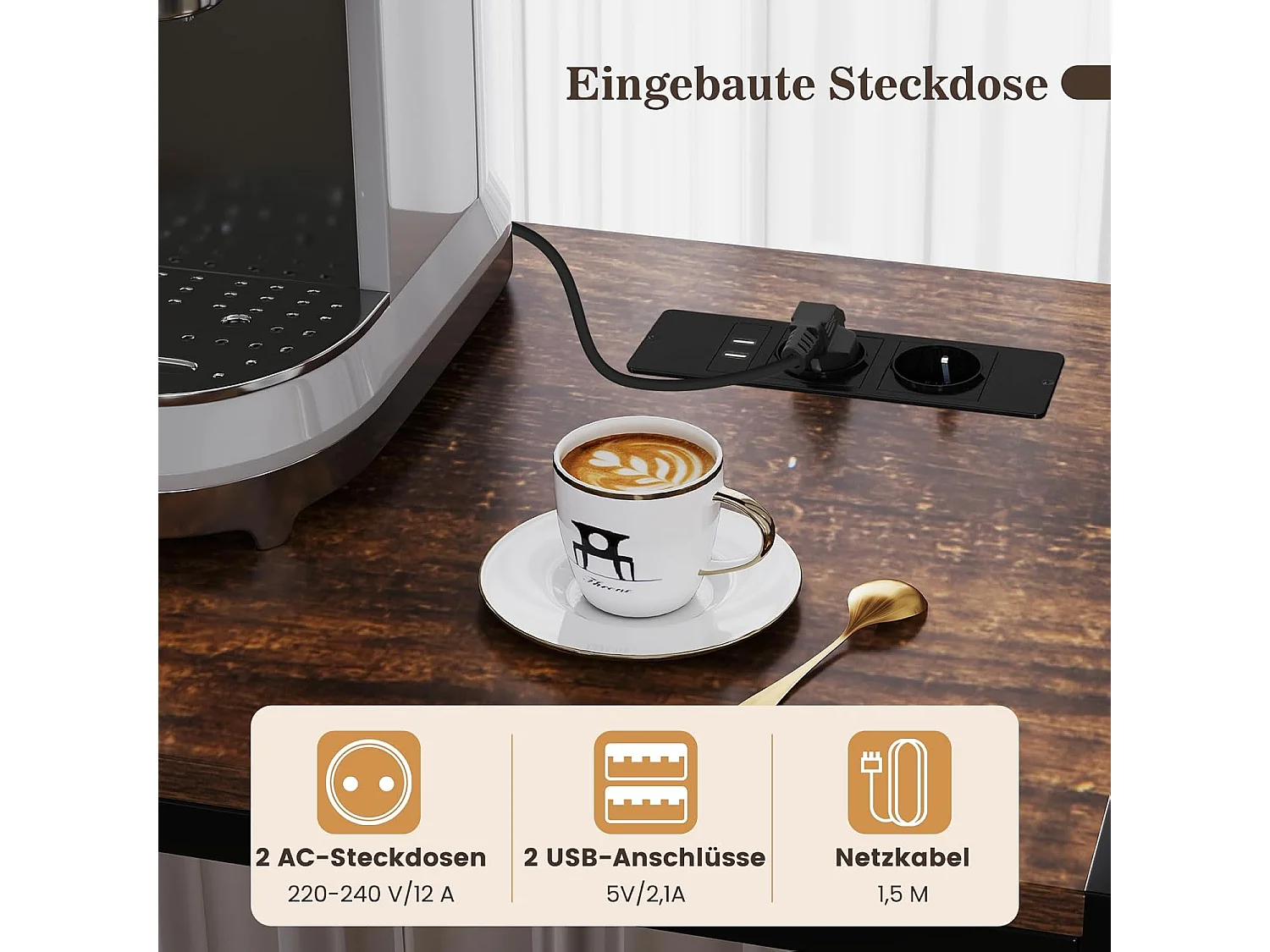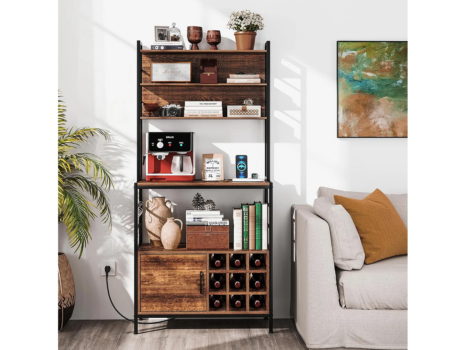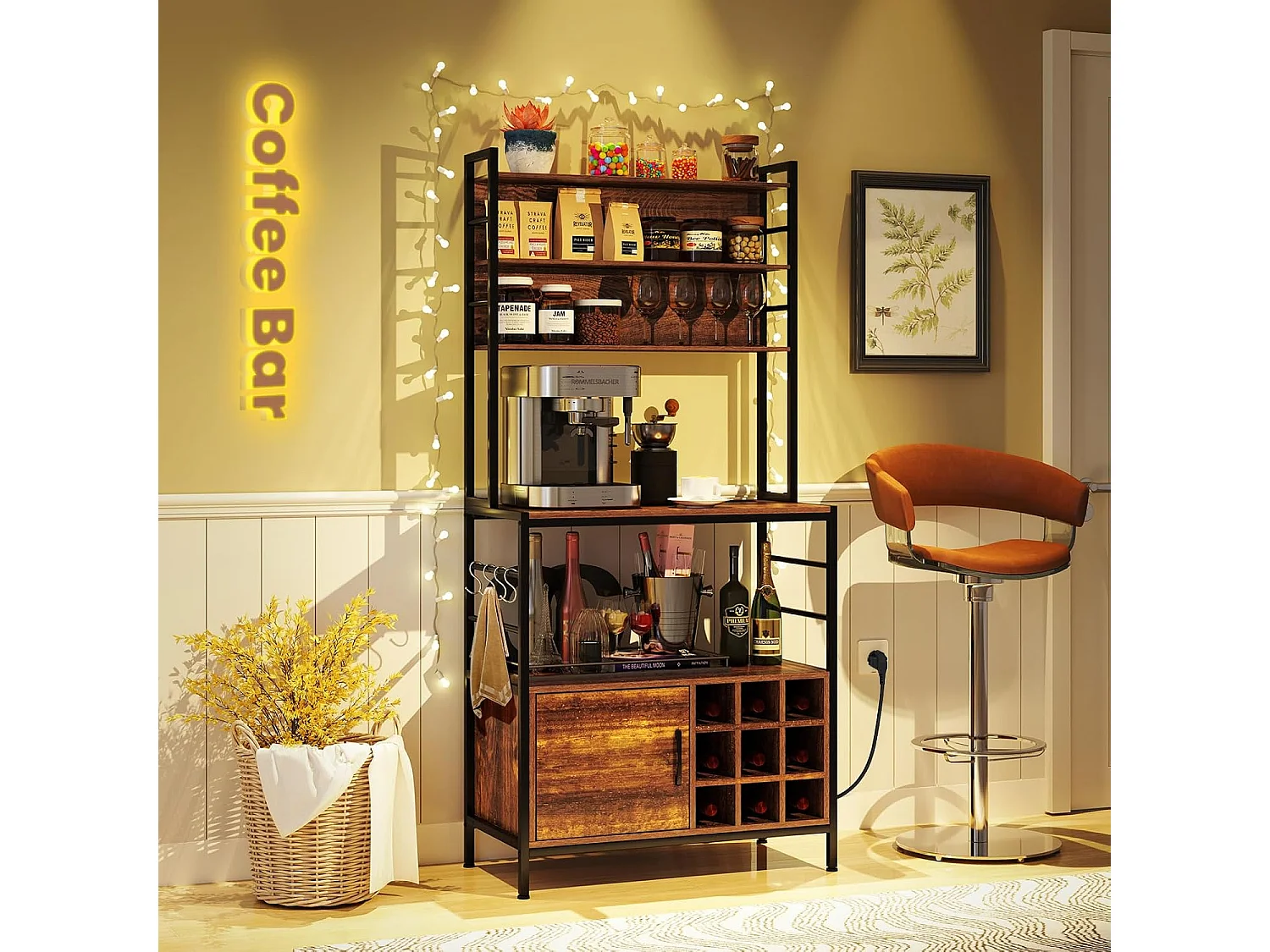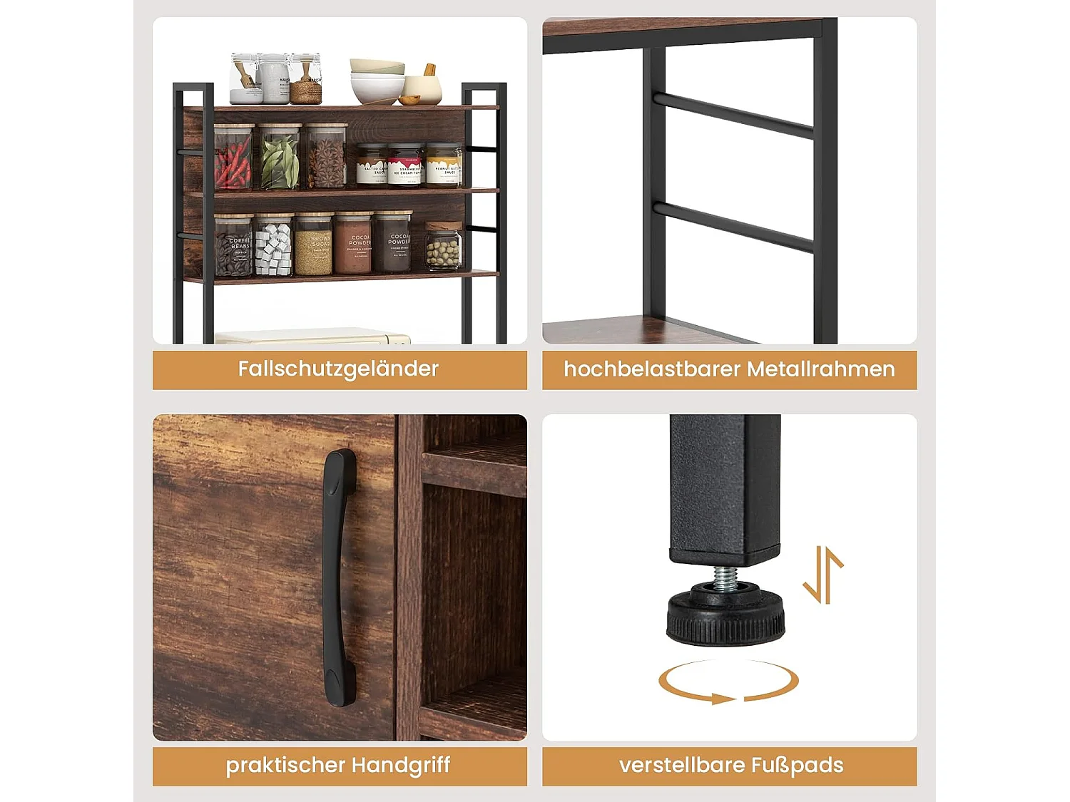 Keukenrek met stopcontact, wijnrek voor 9 flessen, staand rek met kast,magnetronrek met metalen frame, bakkersrek voor keuken, 80 x 40 x 170 cm (bruin)VH33775